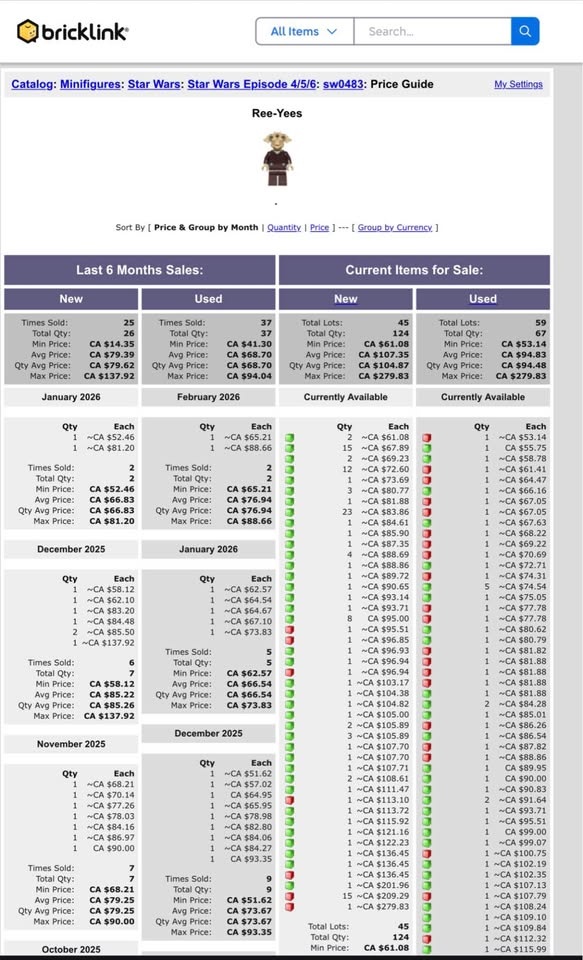 Original LEGO Star Wars Ree-Yees minifigure from Jabba’s Sail Barge (Set 75020-1).