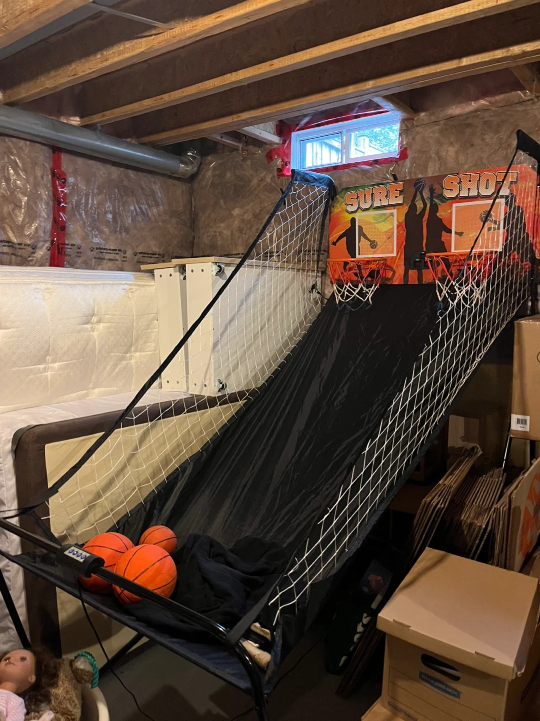 76Selling a Sure Shot basketball arcade game! It comes with three orange basketballs and has a sound feature. Perfect for some at-home fun!