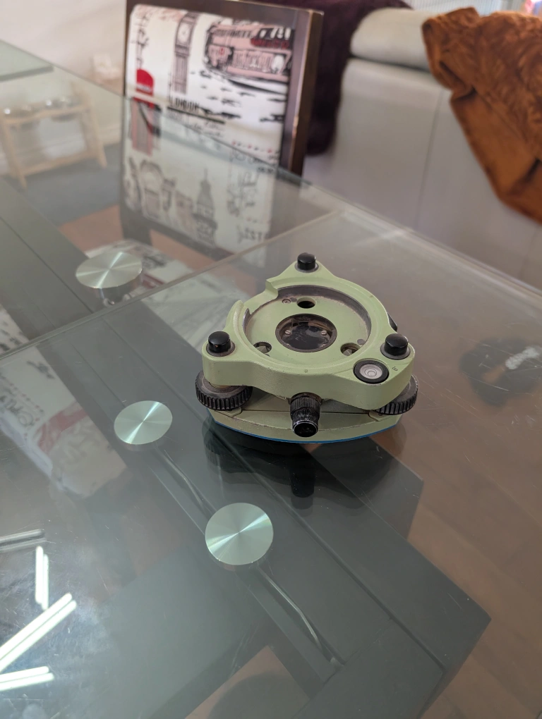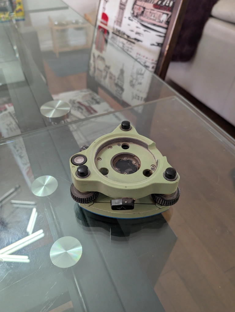 62Selling a tribrach adapter for surveying instruments. It appears to be in good condition and ready for use. It's a sturdy piece of equipment for anyone in the surveying field