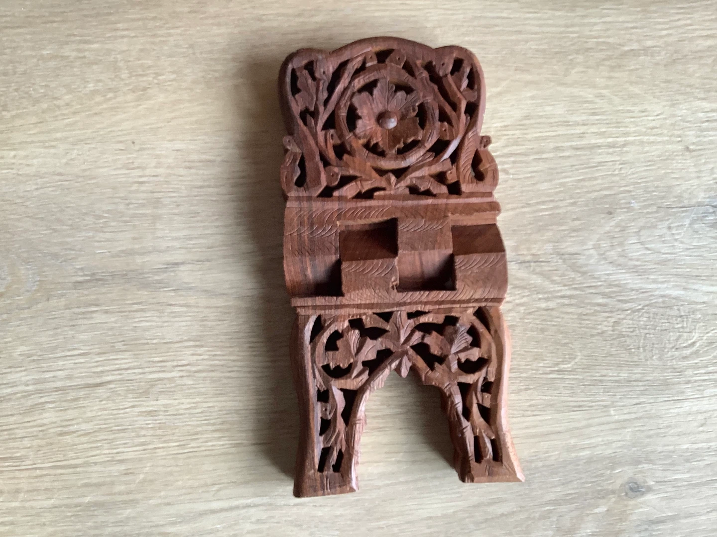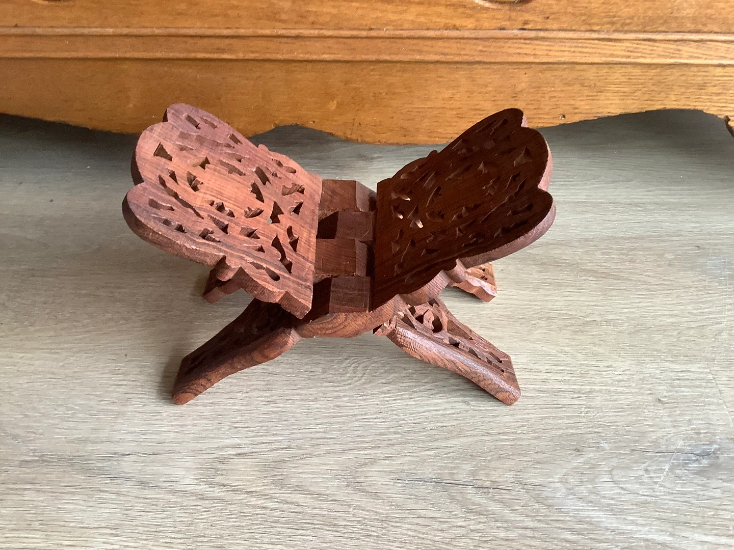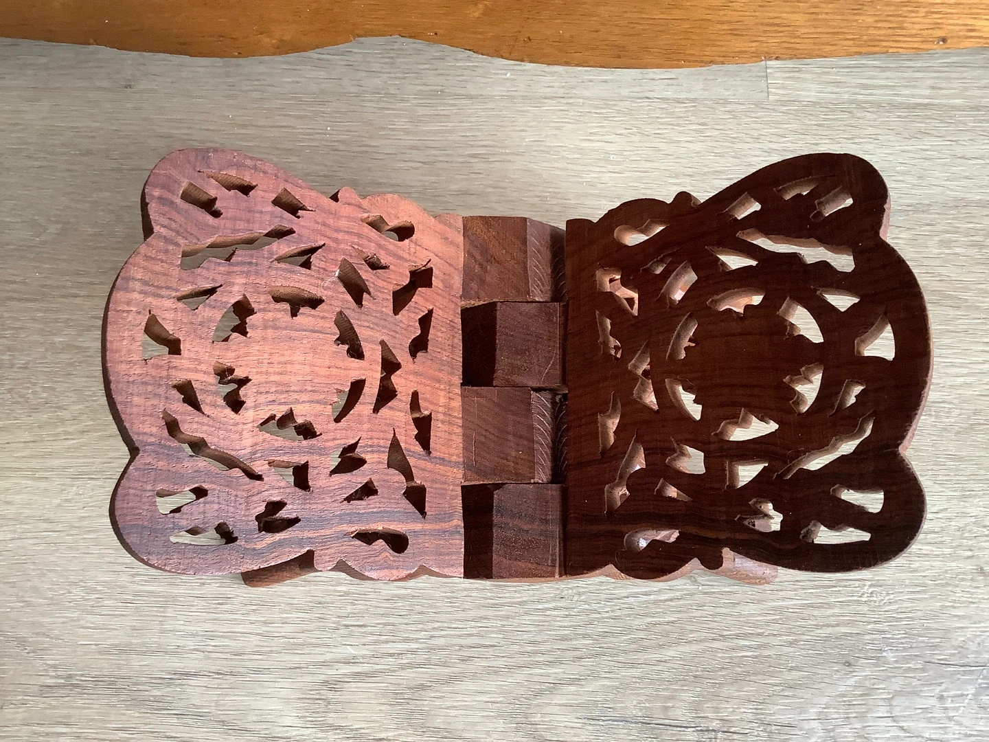 Vintage hand carved teak wood book stand often referred to as a Rehal/Rihal.