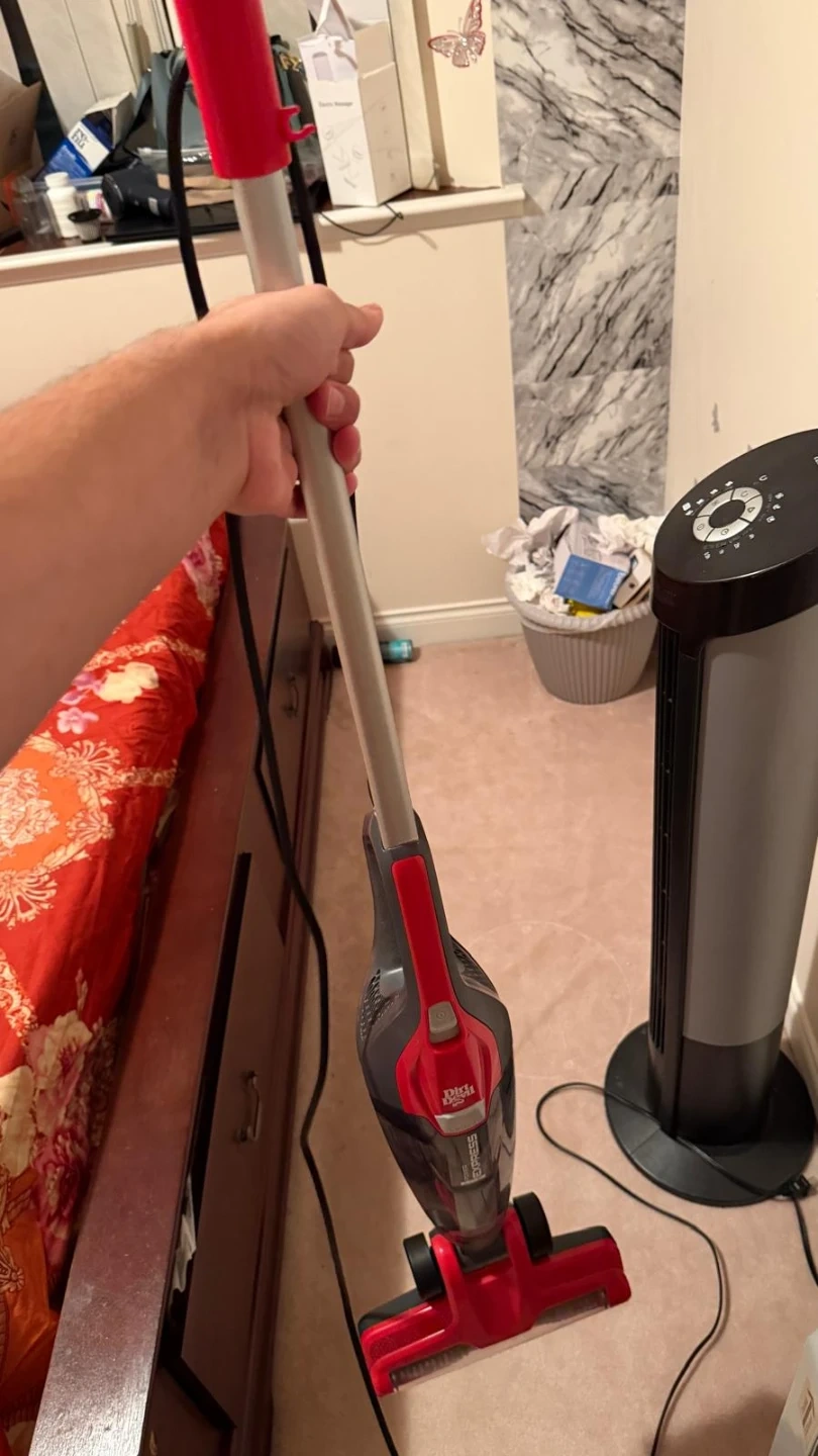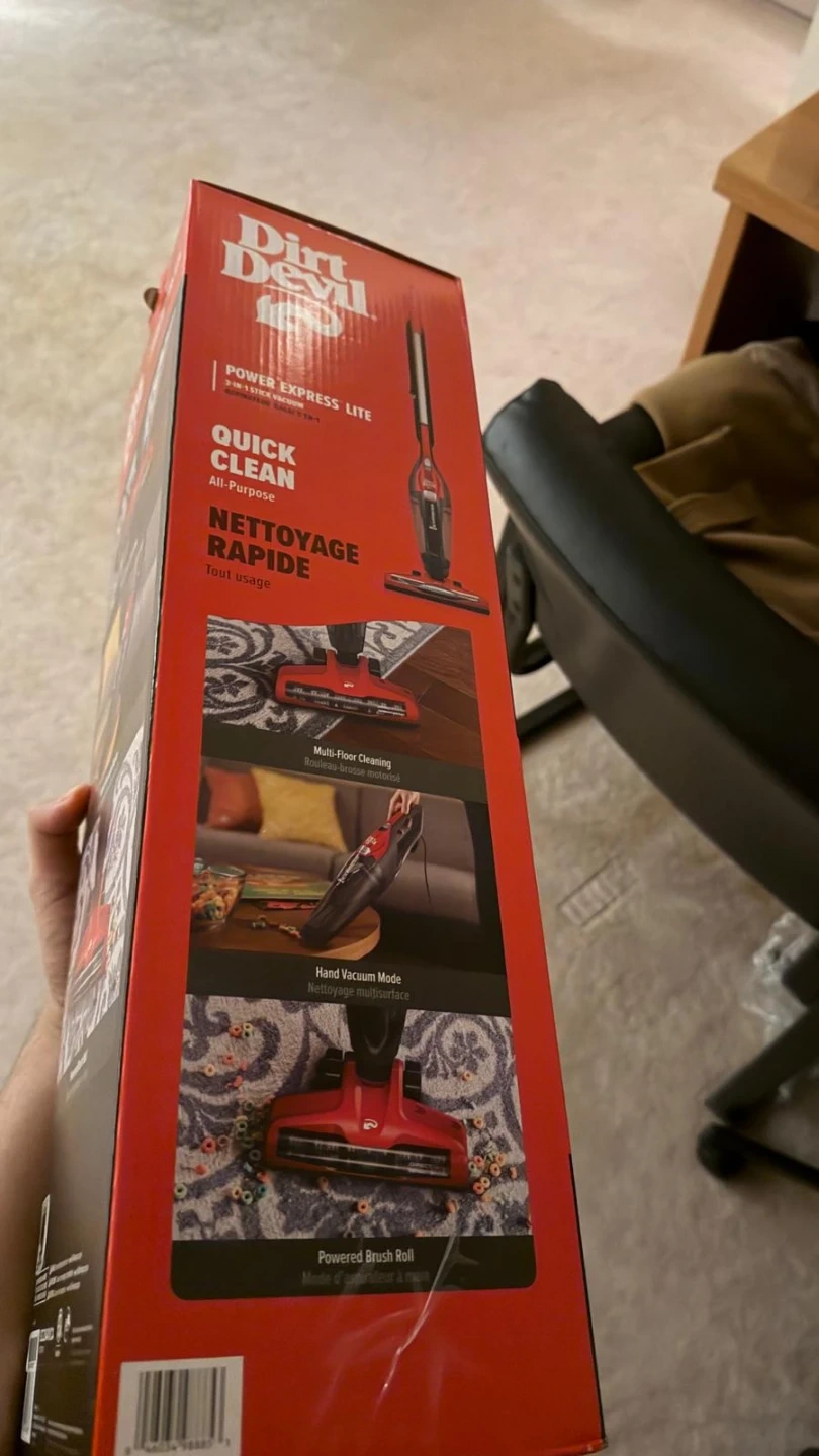 This is a Dirt Devil Power Express Lite corded vacuum. It's designed for quick, all-purpose cleaning and features a powered brush roll. It can be used for multi-floor cleaning and as a hand vacuum.