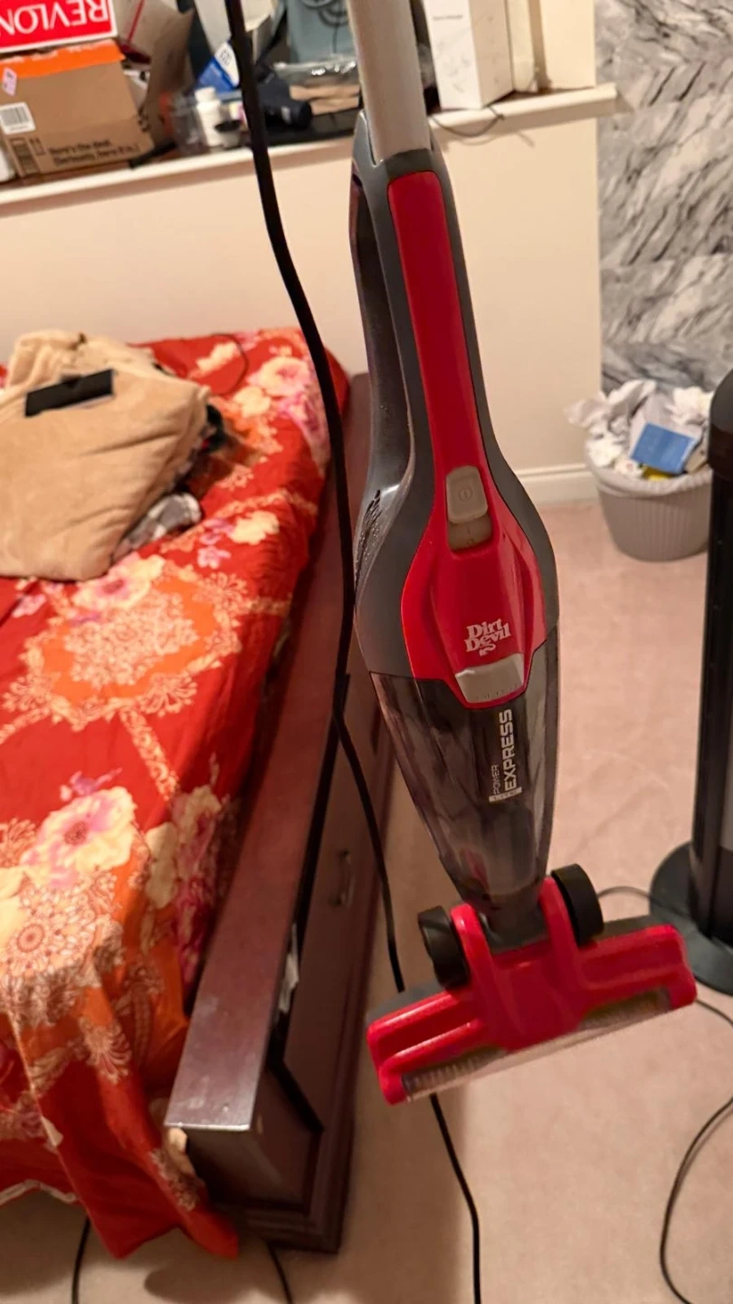 This is a Dirt Devil Power Express Lite corded vacuum. It's designed for quick, all-purpose cleaning and features a powered brush roll. It can be used for multi-floor cleaning and as a hand vacuum.