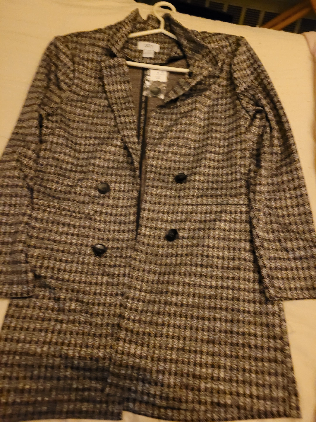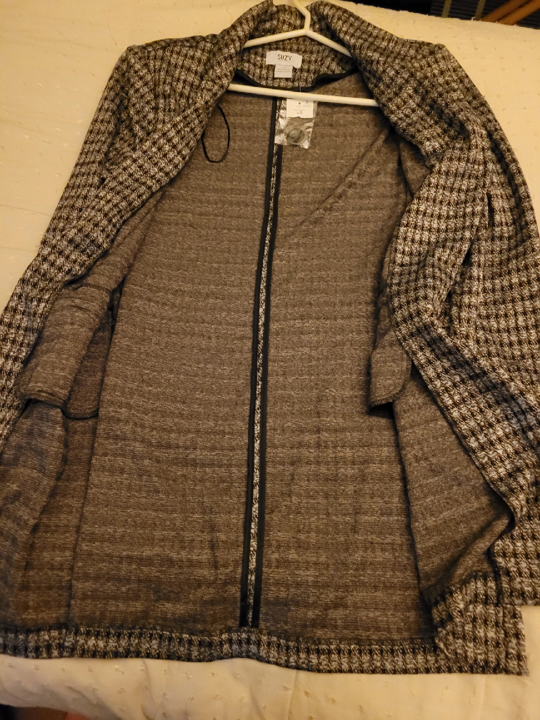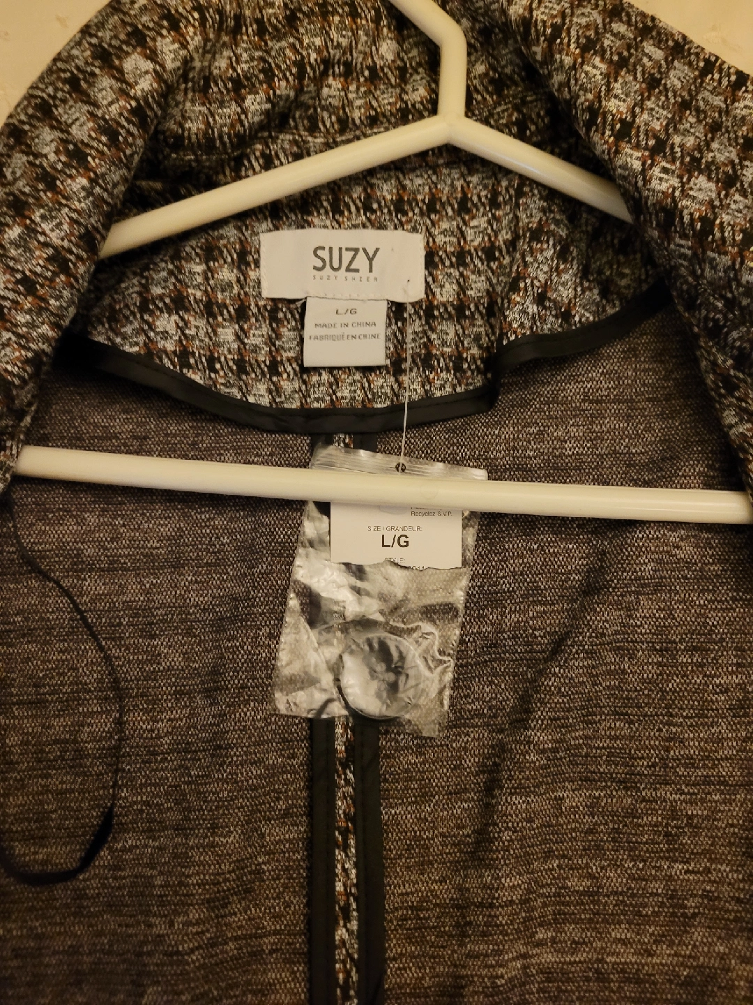 Selling a Suzy Shier blazer in size large! It features a brown and white patterned design. It's in great condition and ready for a new home
