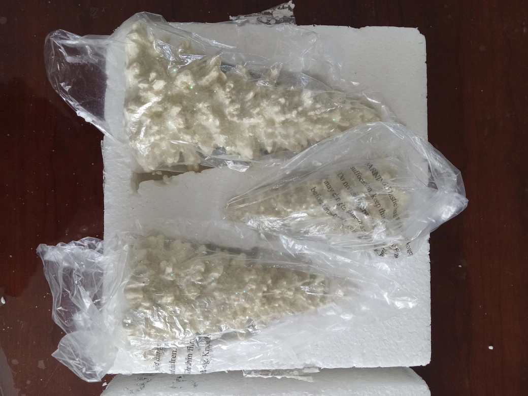 Set of 3 white glitter Christmas trees. The trees are in various sizes. The largest is approximately 12 inches tall and the smallest is approximately 6 inches tall. These trees are perfect for decorating your home for the holidays.