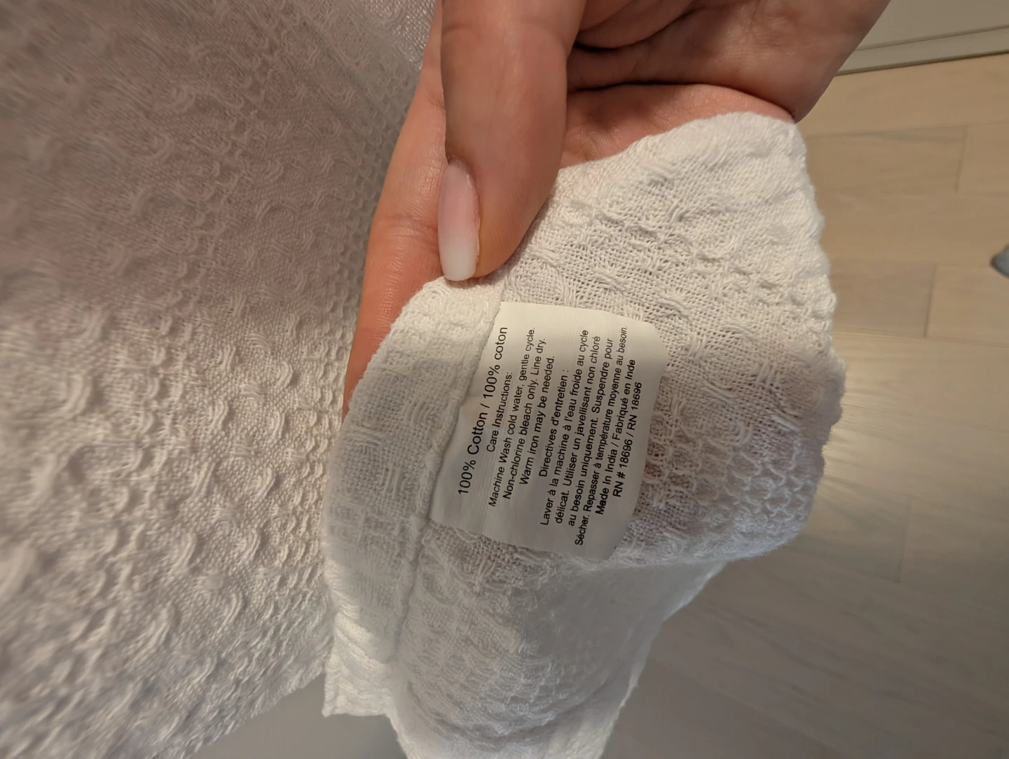 100% cotton shower curtain with a textured pattern. I originally bought it from Home sense for 24+tax. Selling because I recently move to a new apartment where the shower has a glass door therefore no longer need it. It's in perfect condition.