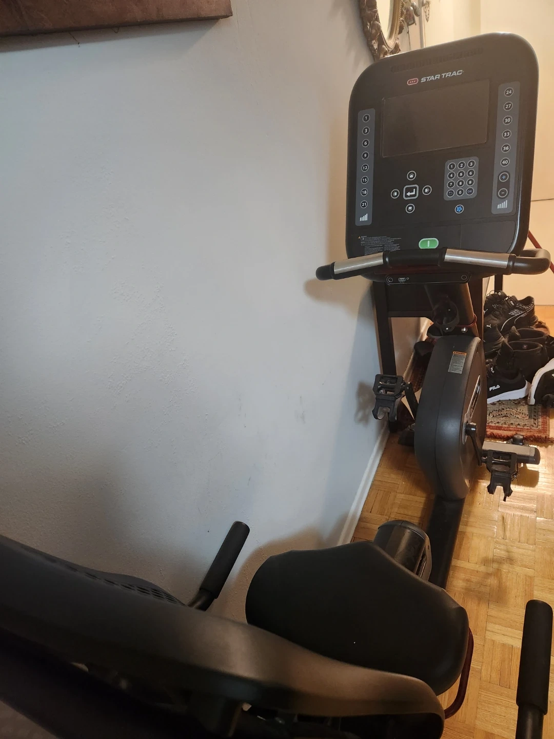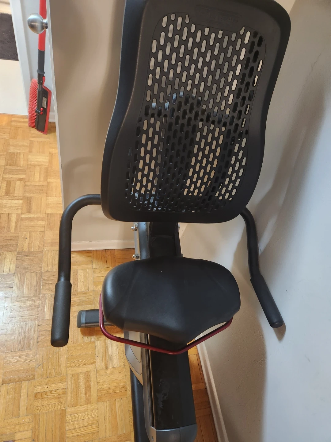This Star Trac recumbent exercise bike offers a comfortable workout. It features a mesh back seat for breathability and adjustable resistance. This bike is great for home cardio routines.