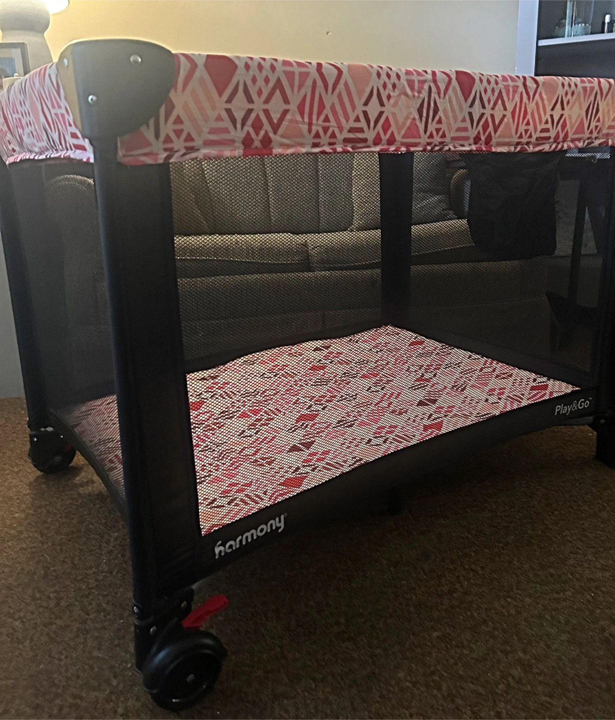 Selling a Harmony Play&Go playard in damn near perfect shape! It features a stylish pink and white patterned design. Perfect for keeping your little one safe and entertained, whether at home or on the go. Easy to set up and take down, making it super convenient for travel or storage.