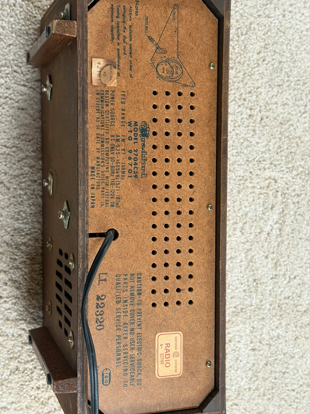 Beautiful vintage Bradford FM/AM radio, made in Japan.