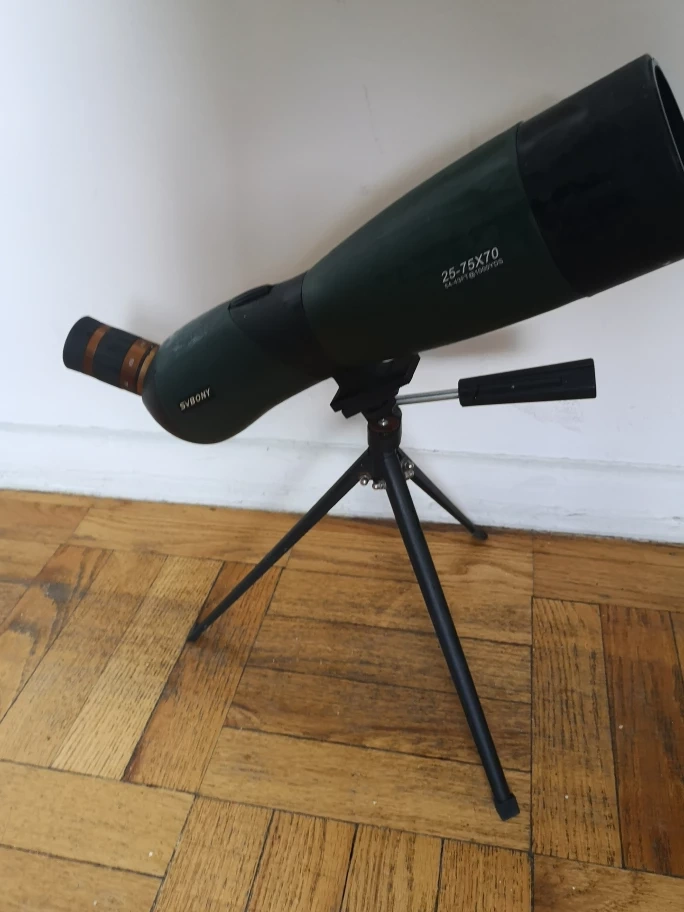 30Looking to sell my SVBONY spotting scope! It's in great shape and comes with its tripod. The scope is a 25-75x70 model, perfect for birdwatching or stargazing. Let me know if you're interested!
