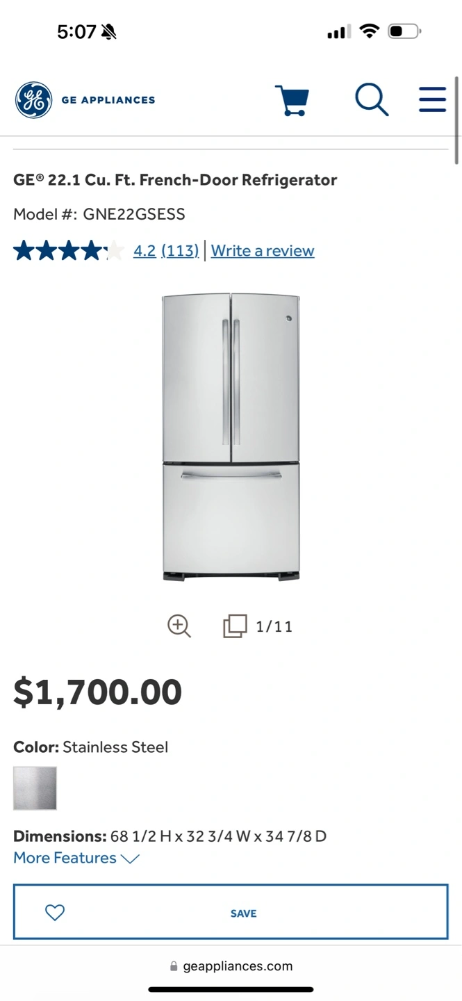 🧡 GE 22.1 Cu. Ft. French-Door Refrigerator - Stainless Steel