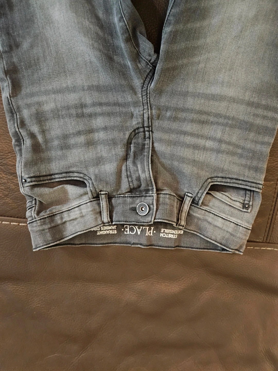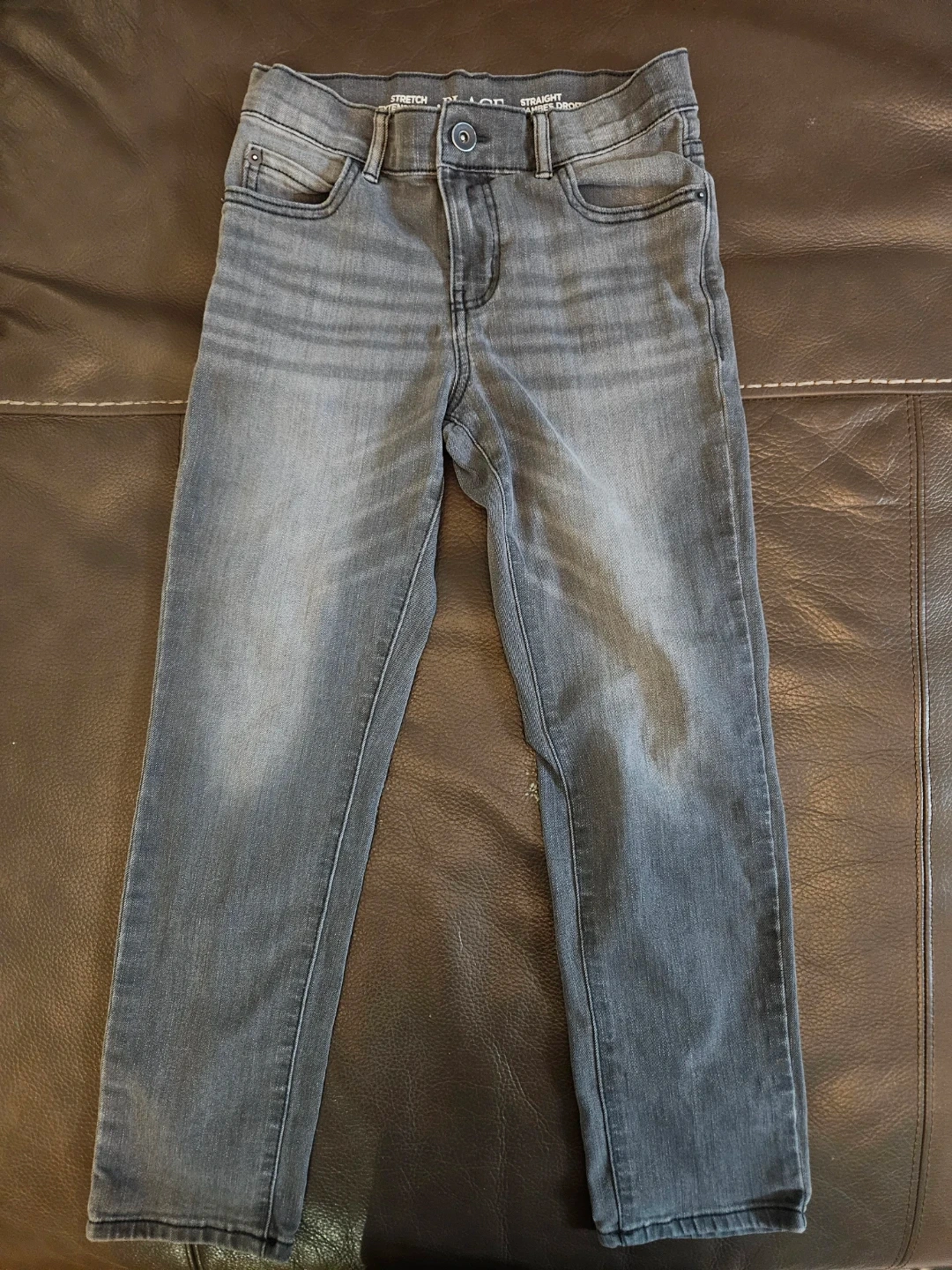 Selling a pair of The Children's Place jeans in size 8. They are a stylish gray color and have a straight leg fit. These jeans are stretch extensible, making them comfortable for kids to wear. Perfect for everyday wear!