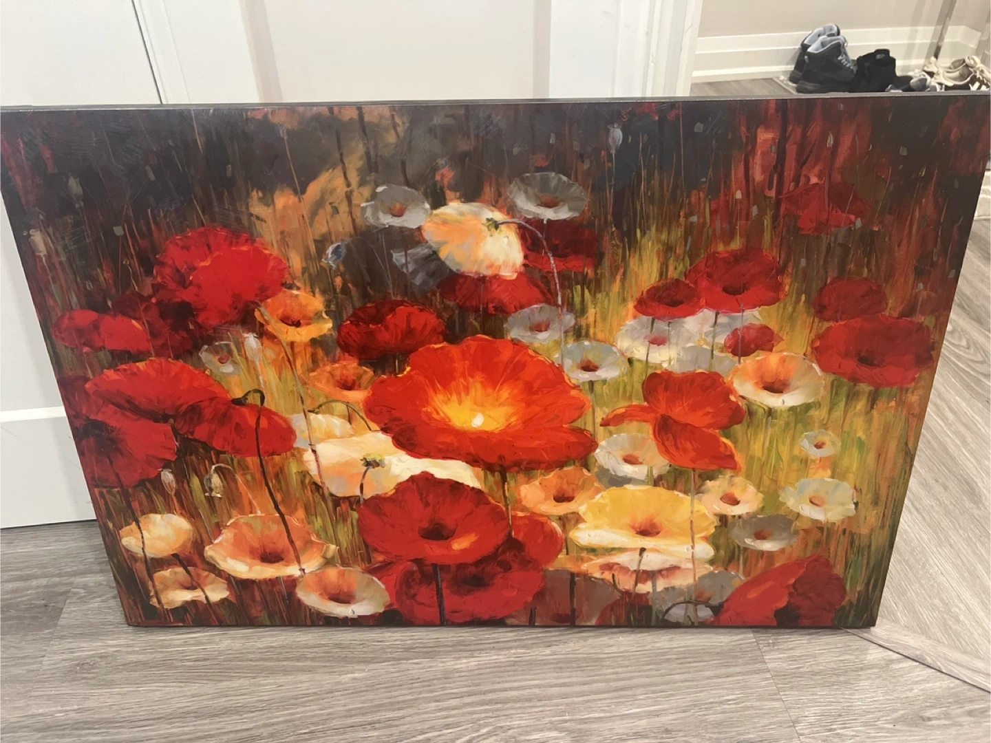 Looking to add a pop of colour to your space? I'm selling this beautiful floral canvas wall art. It's in great condition and ready to brighten up any room