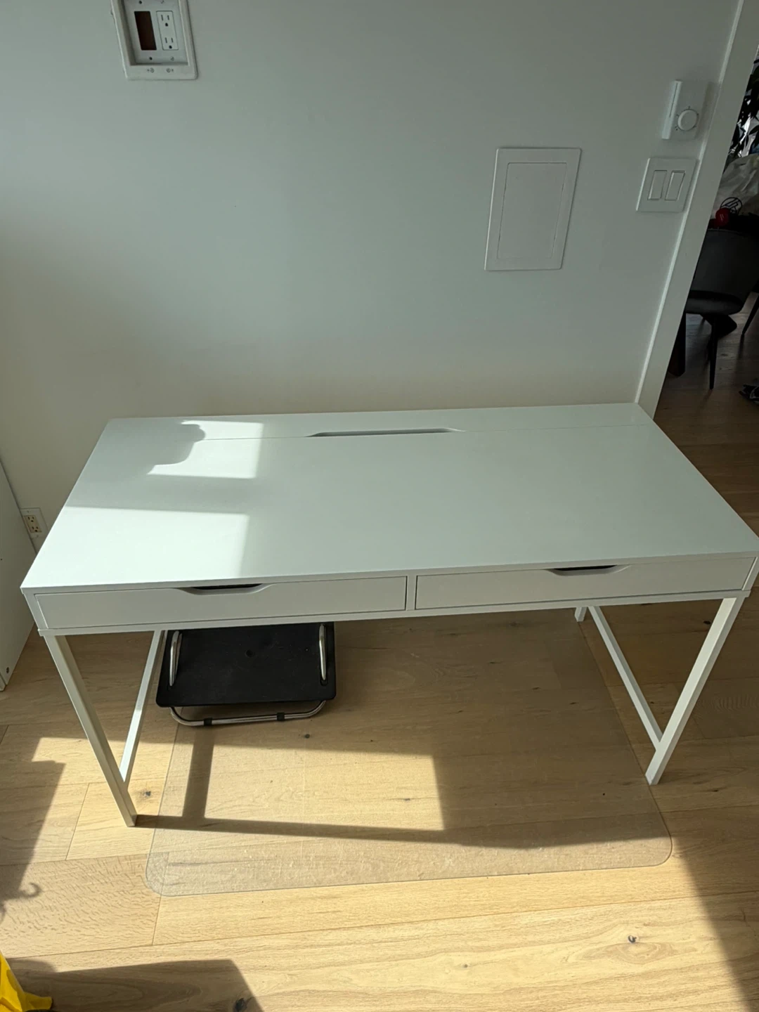 Ikea office desk. Used but like new. Need to seek due to moving to a new place and it’s too big for the den in new place. Sturdy, solid office desk.