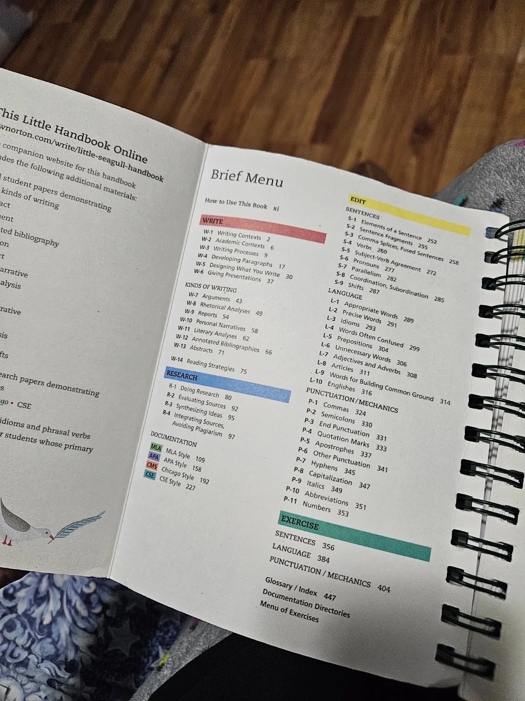 The Little Seagull Handbook 2nd edition. It's a helpful guide for writing, research, editing, and punctuation. The handbook includes detailed examples of various citations for APA, MLA, Chicago, etc.