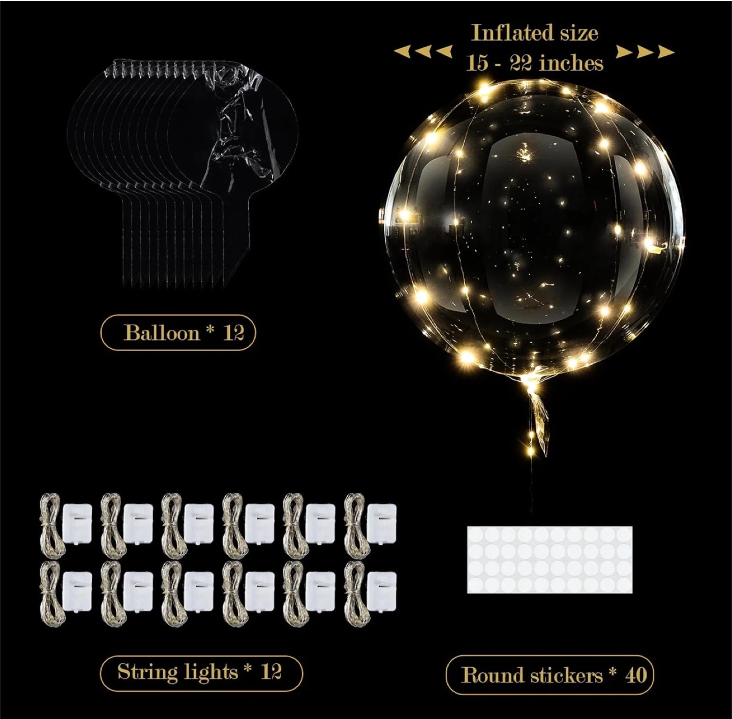 12 Pack LED Bobo Balloons with String Lights