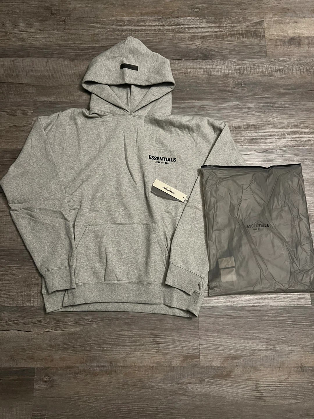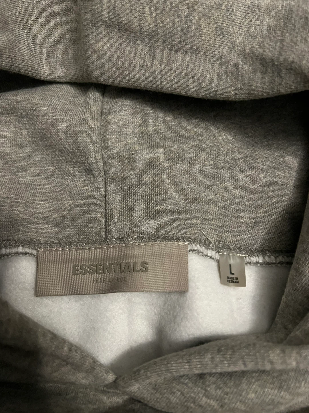 Grey Essentials hoodie from Fear of God. Size L. Comes with original packaging. Made in Vietnam.