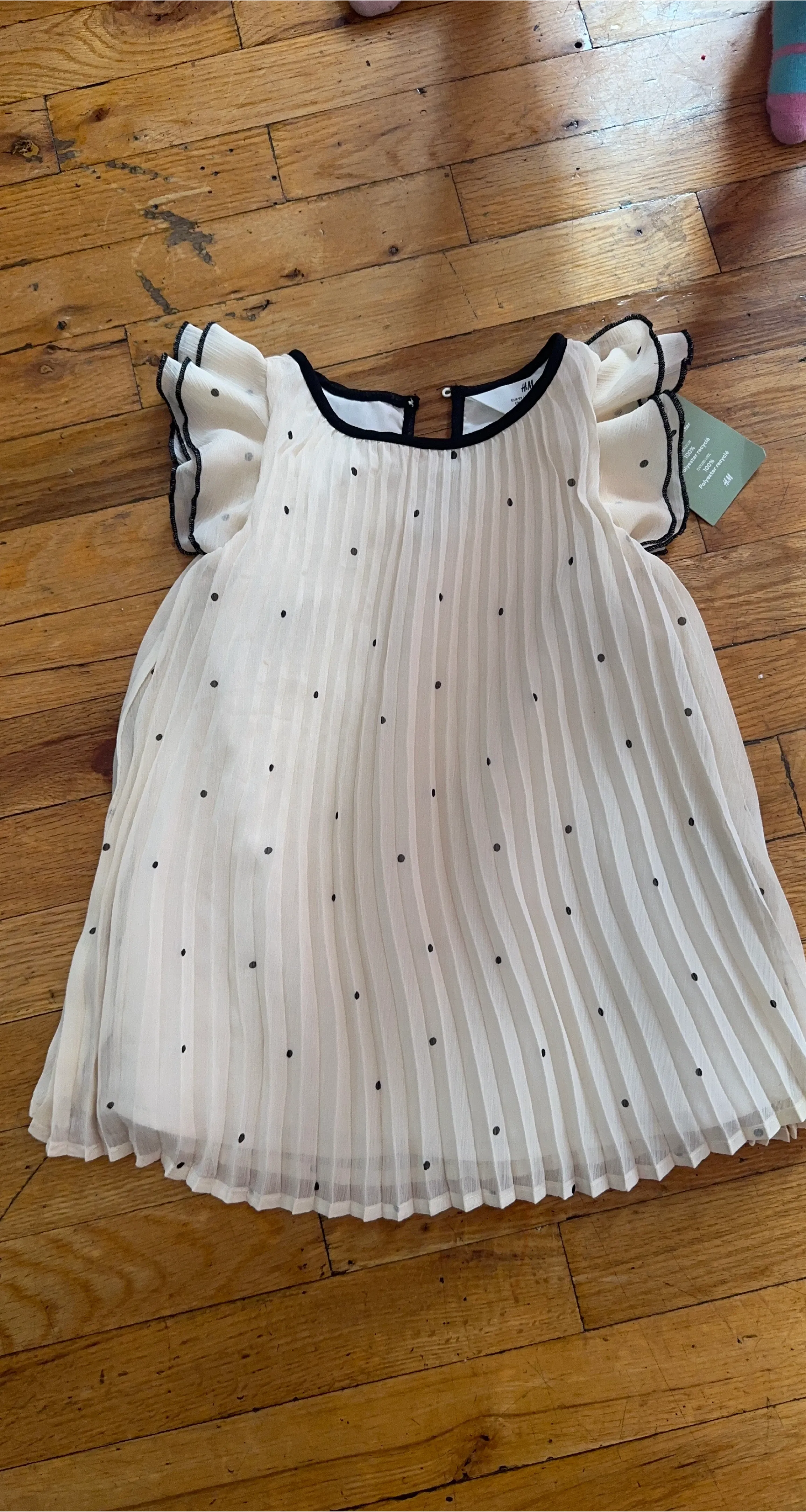 A cute white dress from H&M! It features black polka dots and pleated detailing. Perfect for a party or any special occasion!