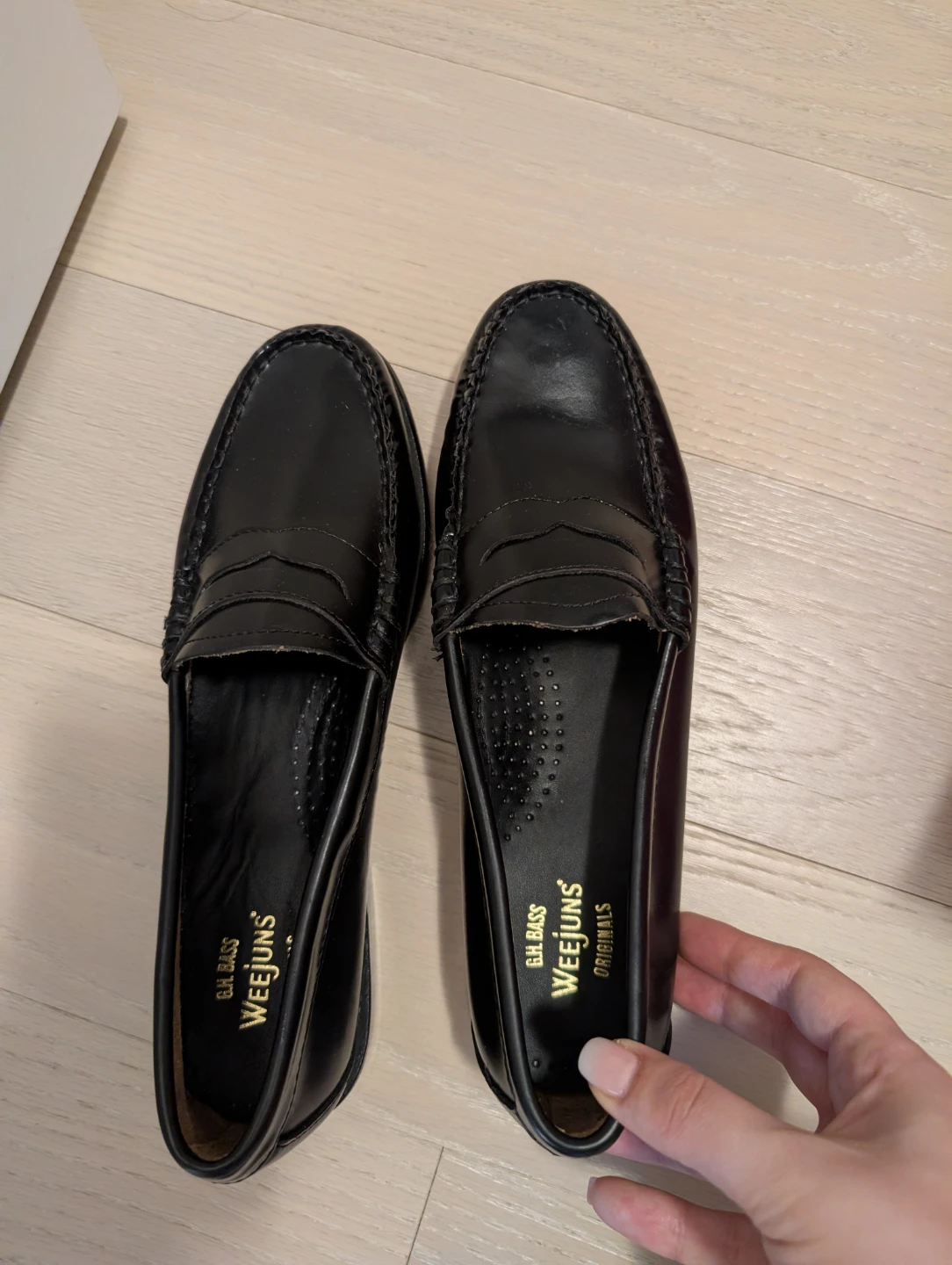 Classic black leather penny loafers from G.H. Bass Weejuns. Crafted with a smooth leather upper and durable leather sole. Perfect for everyday wear or dressing up an outfit!