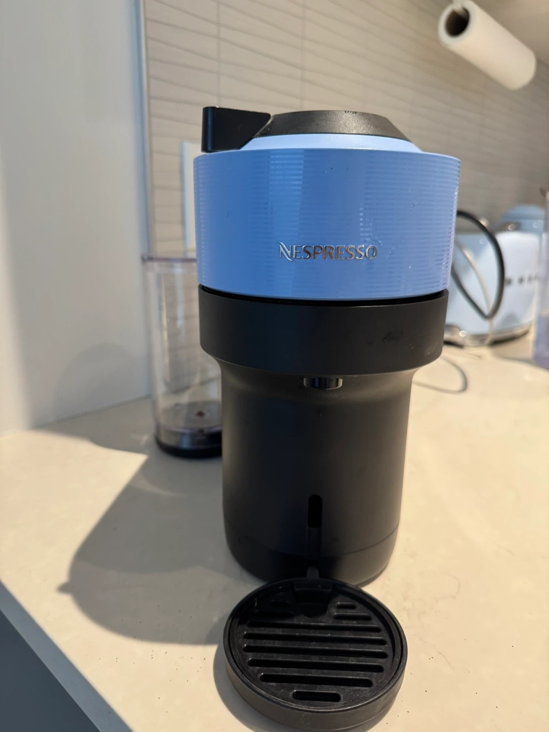 Selling a Nespresso Vertuo Pop coffee machine in light blue. It's in great shape and ready to make some delicious coffee.