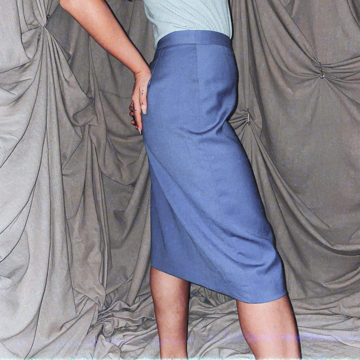 vintage cornflower blue midi high waist office skirt