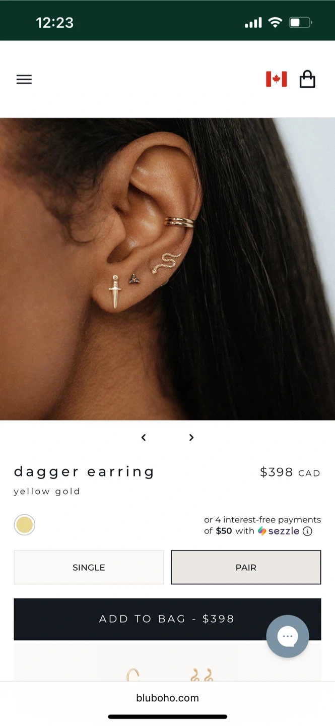 Bluboho Dagger Earring - Yellow Gold