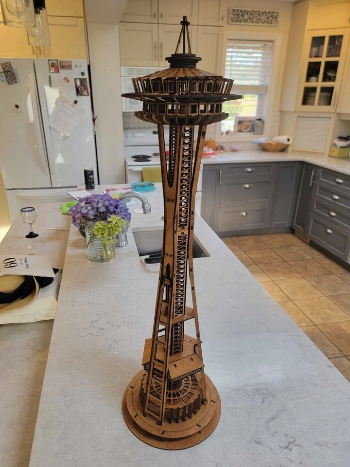 Here is my newest laser cutting and engraving model of the world-famous Seattle Space Needle. This super-detailed model was done considerably quicker than the original construction. Over 70 million people have visited this engineering marvel since its construction. Large Model Dimensions (Assembled): Height: 696 mm, Length: 220 mm, Width: 220 mm. Yes, it is available. I am able to take the following for payment: Cash, E-Transfer, Debit (In Person with Square Device), Credit Card (In Person with Square Device). See the other cool things I build (over 100) here: https://timothyflath.smugmug.com/Personal/Laser-Cutting-Engraving-Products
