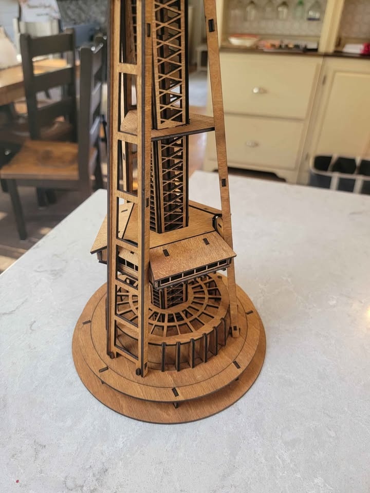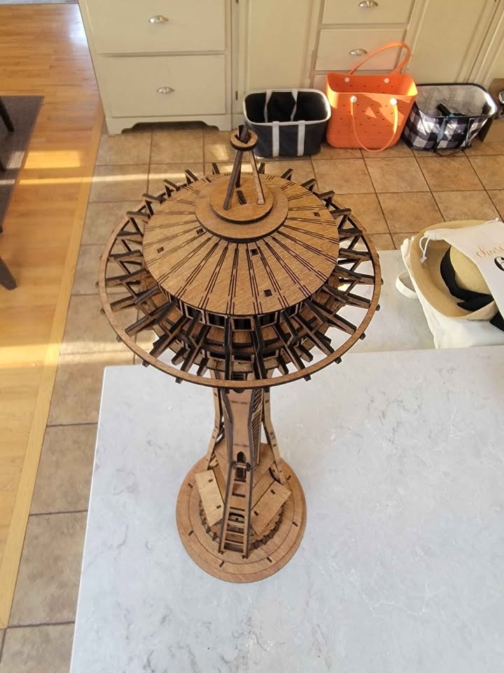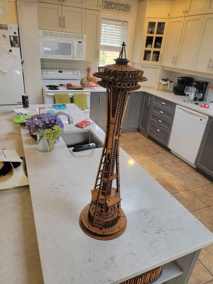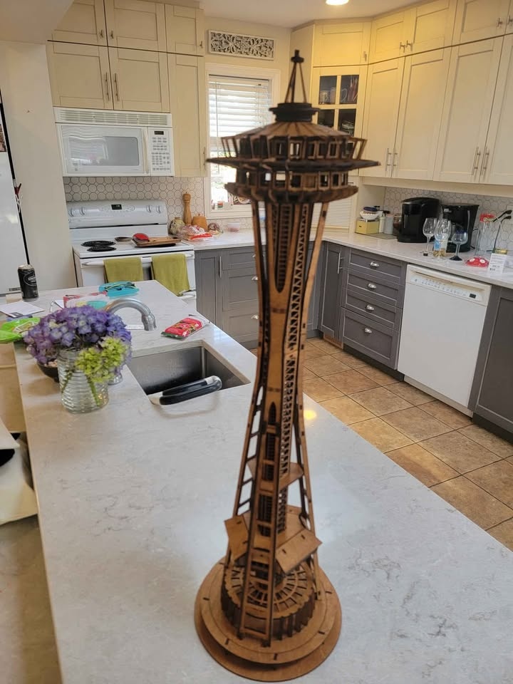 Here is my newest laser cutting and engraving model of the world-famous Seattle Space Needle. This super-detailed model was done considerably quicker than the original construction. Over 70 million people have visited this engineering marvel since its construction. Large Model Dimensions (Assembled): Height: 696 mm, Length: 220 mm, Width: 220 mm. Yes, it is available. I am able to take the following for payment: Cash, E-Transfer, Debit (In Person with Square Device), Credit Card (In Person with Square Device). See the other cool things I build (over 100) here: https://timothyflath.smugmug.com/Personal/Laser-Cutting-Engraving-Products