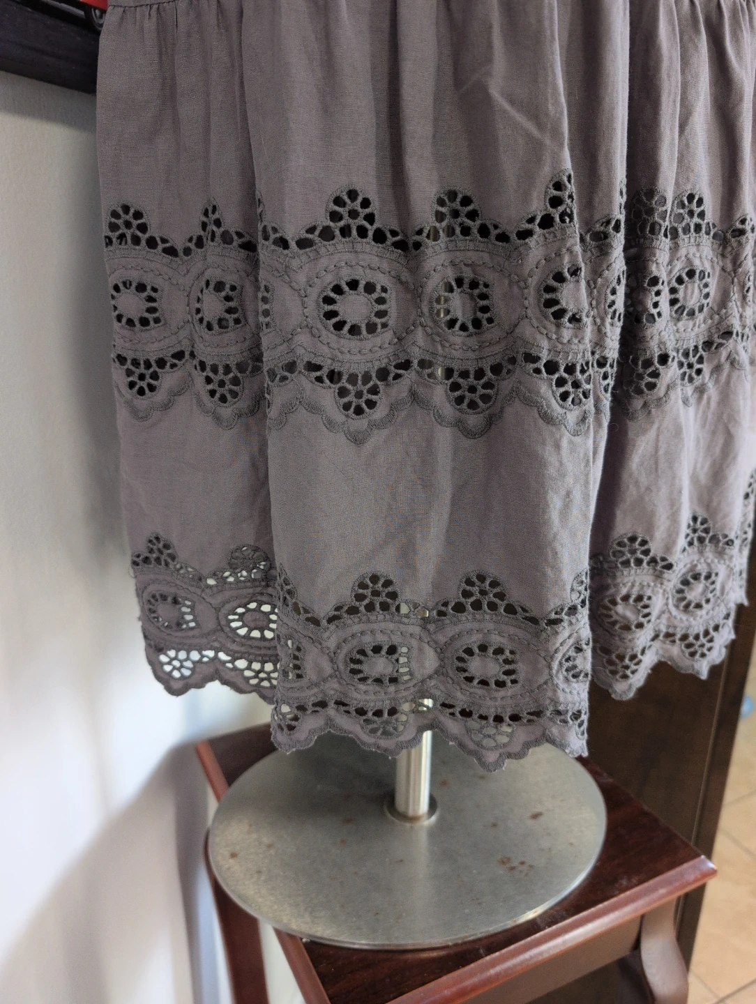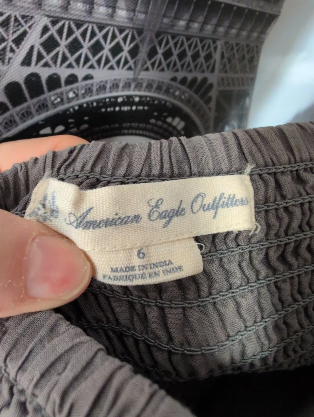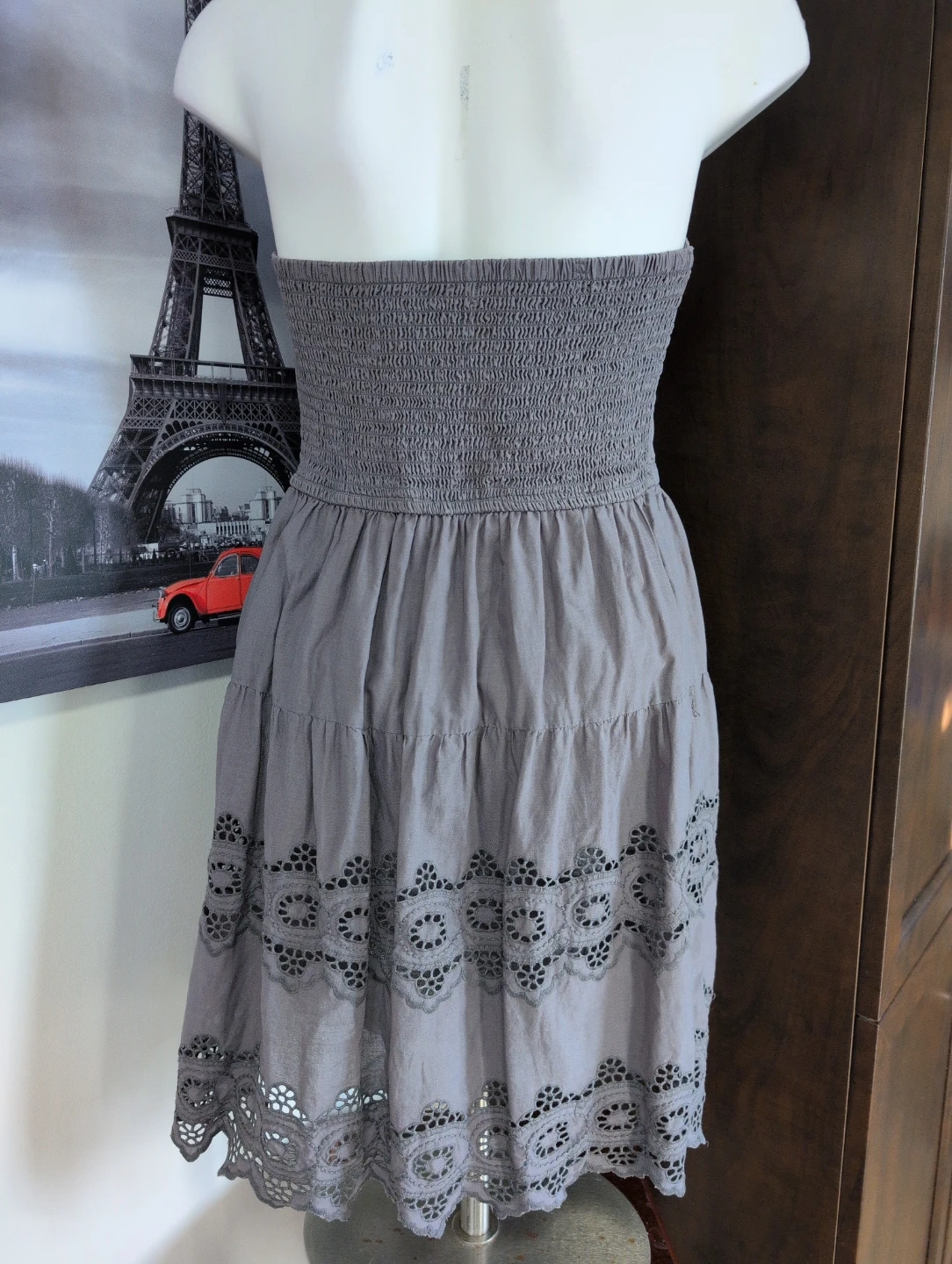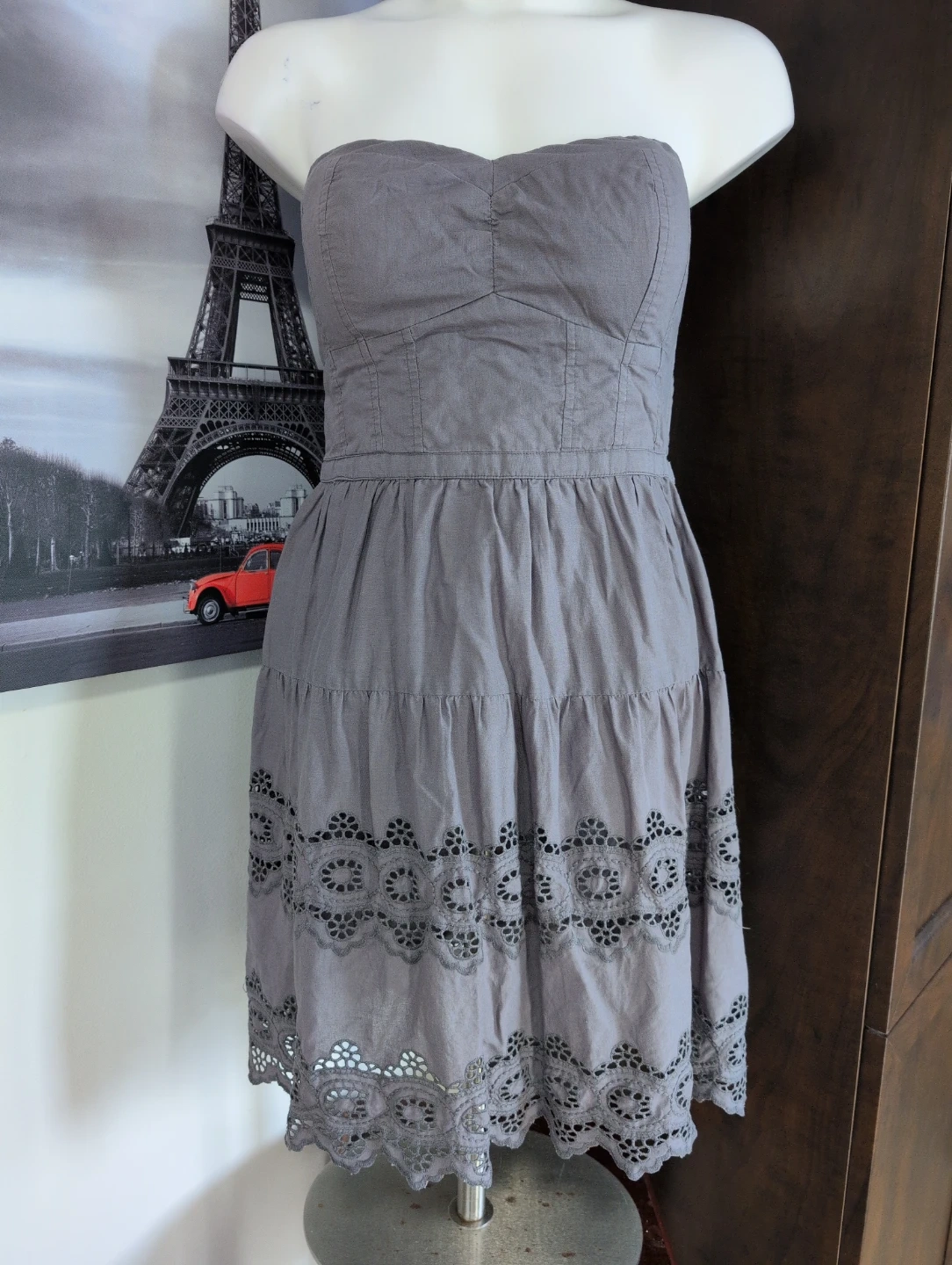 Buy & SellAmerican Eagle Outfitters Grey Eyelet Strapless Dress Size 6American Eagle Outfitters Grey Eyelet Strapless Dress Size 6$10Strapless grey dress with eyelet trim at the hem. It's a size 6 and made in India. The smocked back provides a comfortable fit.ConditionGoodSize6WHERE TO MEETCheck LocationView MapSELLERverifiedNathalieClarence-Rockland650 reviews0 chats·0 favorites·5 viewsSEND CHAT TO SELLERHi Nathalie! I’m interested in your listing.Hi Nathalie! I’m interested in your listing.Get the Karrot app to chatSign In to chat
