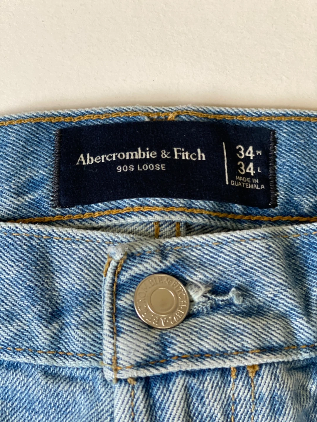 These are Abercrombie & Fitch 90s Loose jeans. They're size 34W x 34L. Made in Guatemala.