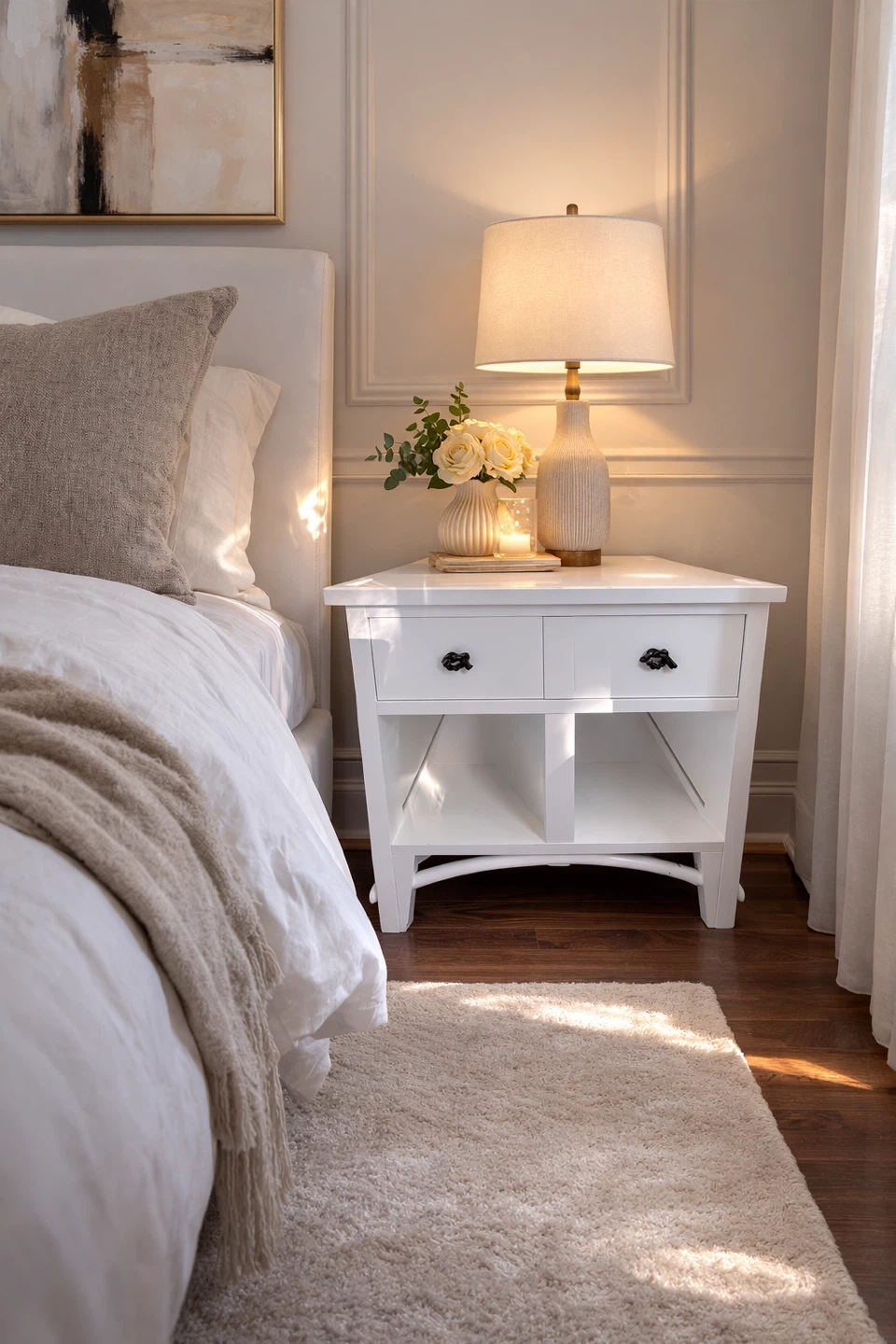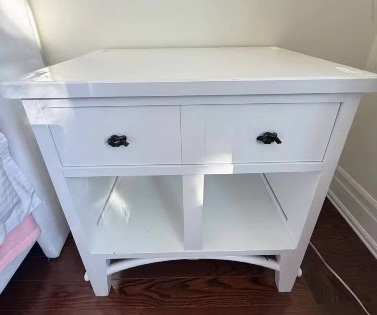 White Nightstand with Rope Knobs