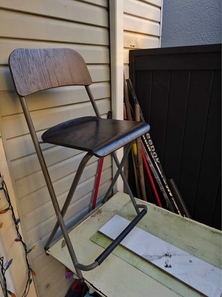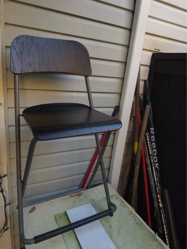 IKEA dark brown, black, and silver Franklin bar stool with backrest