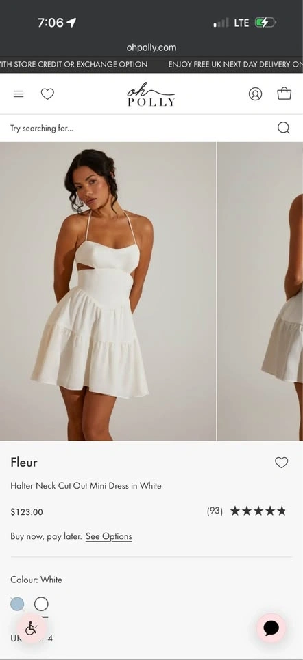 BNWT Oh Polly Fleur Mini Dress White - size 2 US