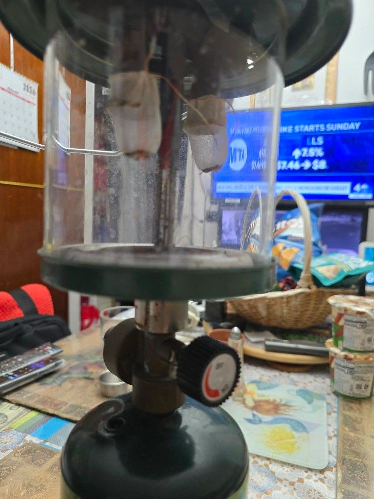 Enjoy your favorite campsite activities day or night with this Wenzel 2-Mantle Propane Lantern. It features a regulated on/off knob for consistent performance in all seasons, a weather-resistant baked enamel finish, and a non-tip base with extendable feet for stable use. The portable design includes a convenient steel carrying/hanging handle, making it ideal for various outdoor activities and essential for emergency situations. It produces up to 2200 lumens and comes with two silk mantles. Please note: the glass dome has a crack, but it does not affect the operation of the lantern.