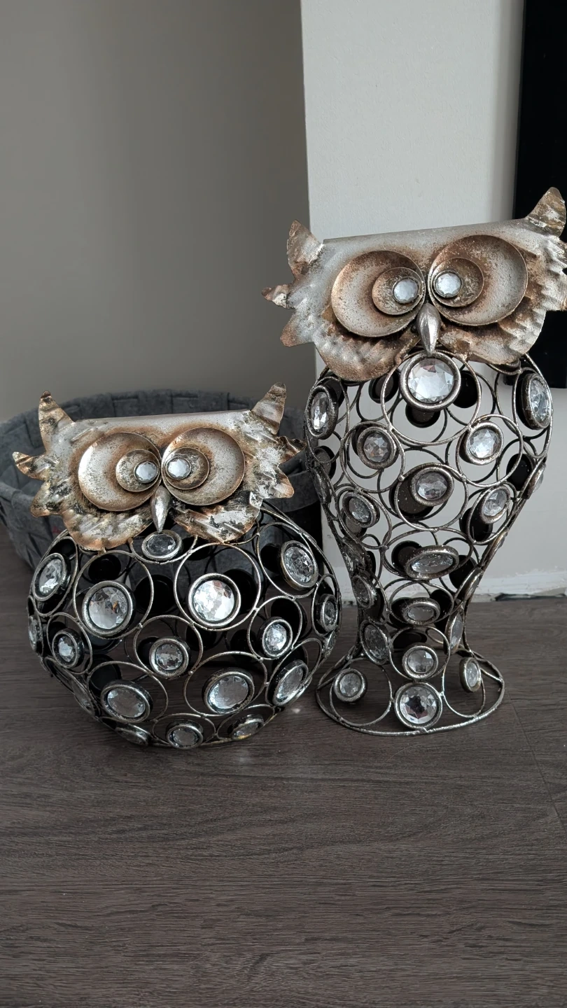 Buy & SellDecorative OwlsDecorative Owls$40Selling two decorative owls. They are crafted from metal wire and feature clear faux crystals. $20.00 eachConditionNewWHERE TO MEETPort CoquitlamView MapSELLERChrisPort Coquitlam442 reviews0 chats·0 favorites·8 viewsSEND CHAT TO SELLERHi Chris! I’m interested in your listing.Hi Chris! I’m interested in your listing.Get the Karrot app to chatSign In to chat
