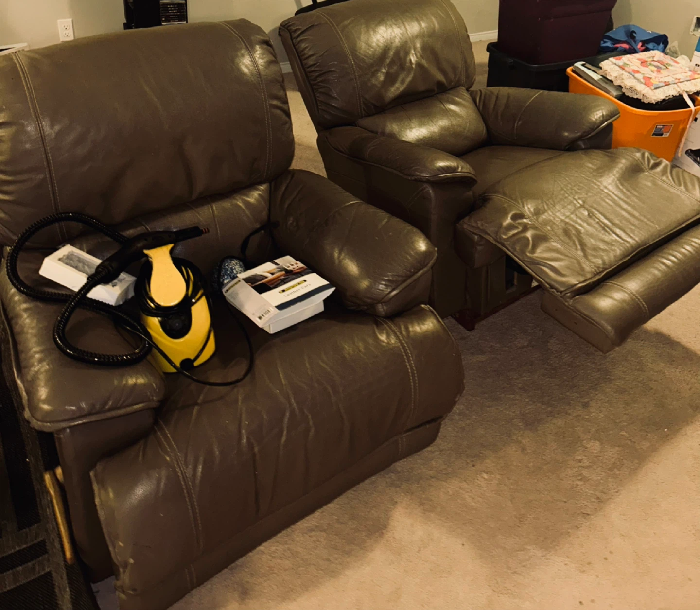 Selling TWO comfy brown leather recliner chairs! Slightly worn. The leather has a nice, worn-in look.