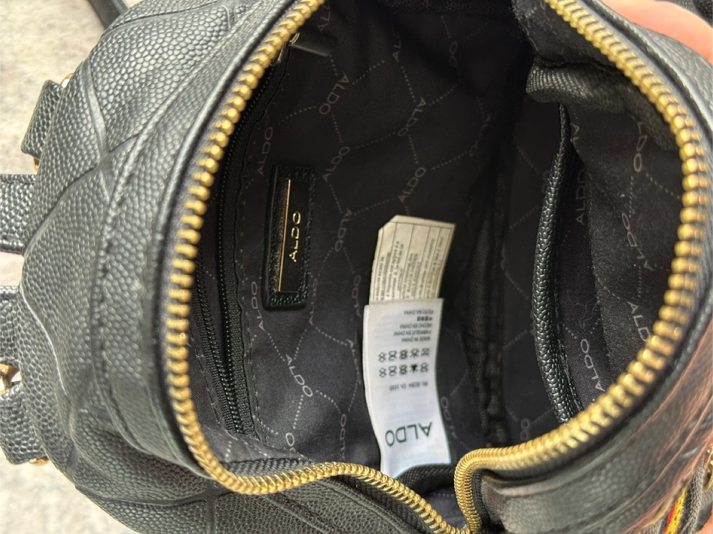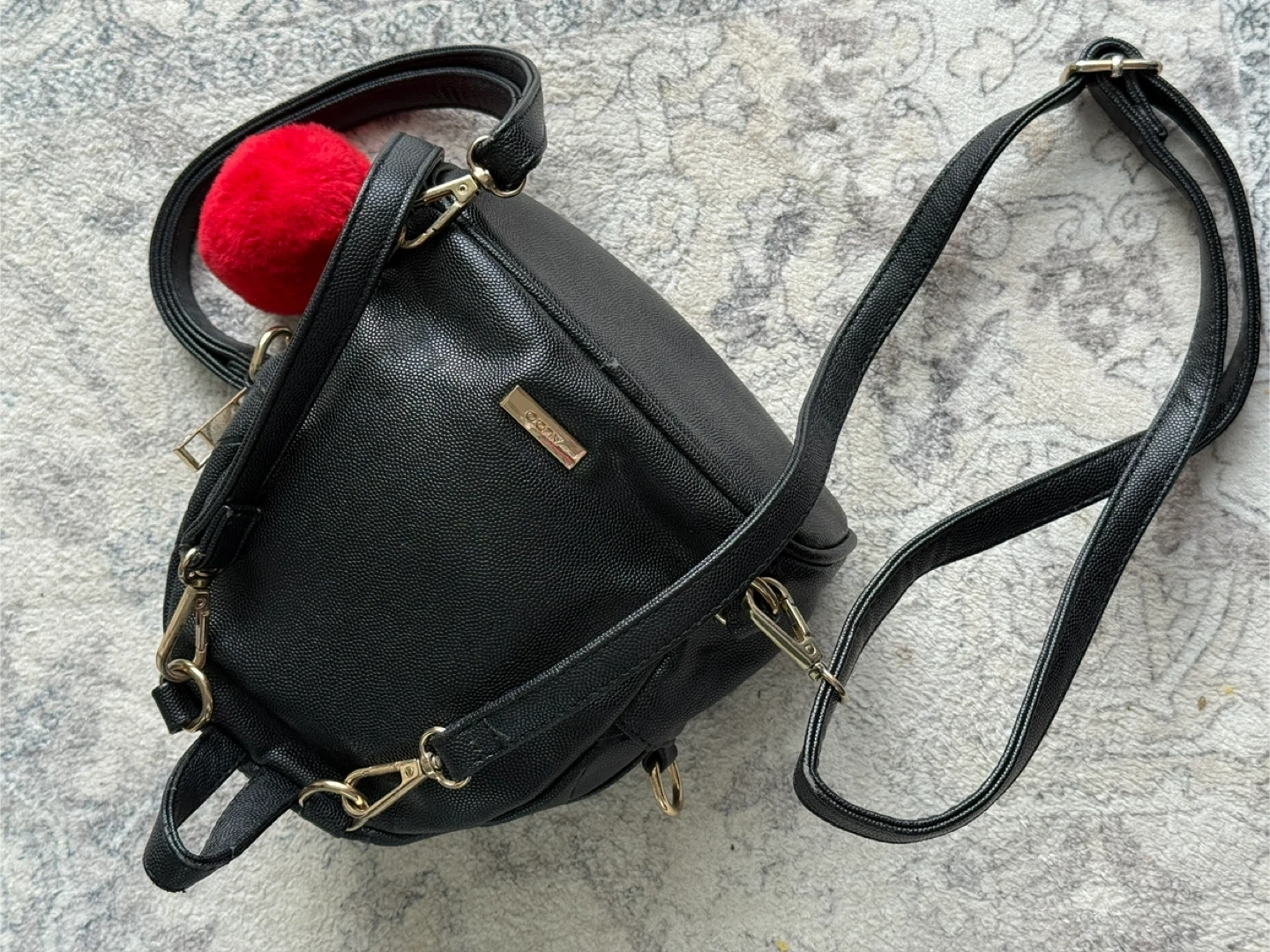 ALDO Black Mini Backpack with Pom Pom Charm