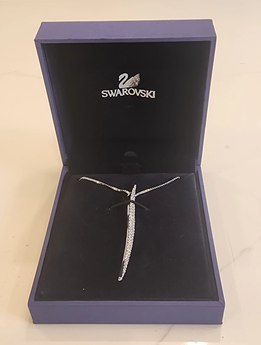 26Selling a beautiful Swarovski crystal necklace! It comes with the original box and certificate of authenticity. The pendant is approximately 2.5 inches long. It's in excellent condition and ready for a new home