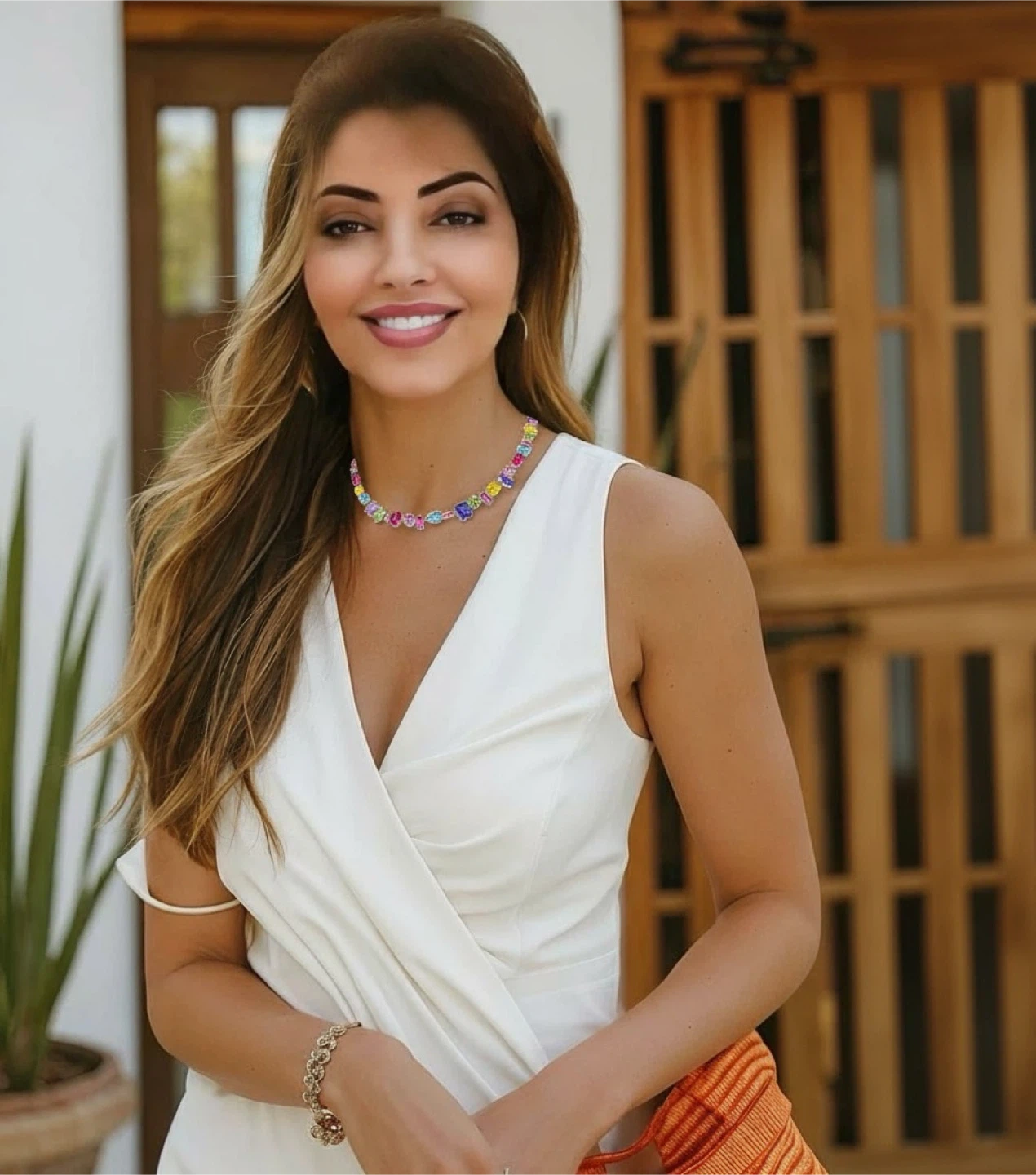 174This is a beautiful Swarovski Lucent necklace featuring a variety of multi-coloured crystals. It's in excellent condition and ready to add a pop of colour to any outfit!