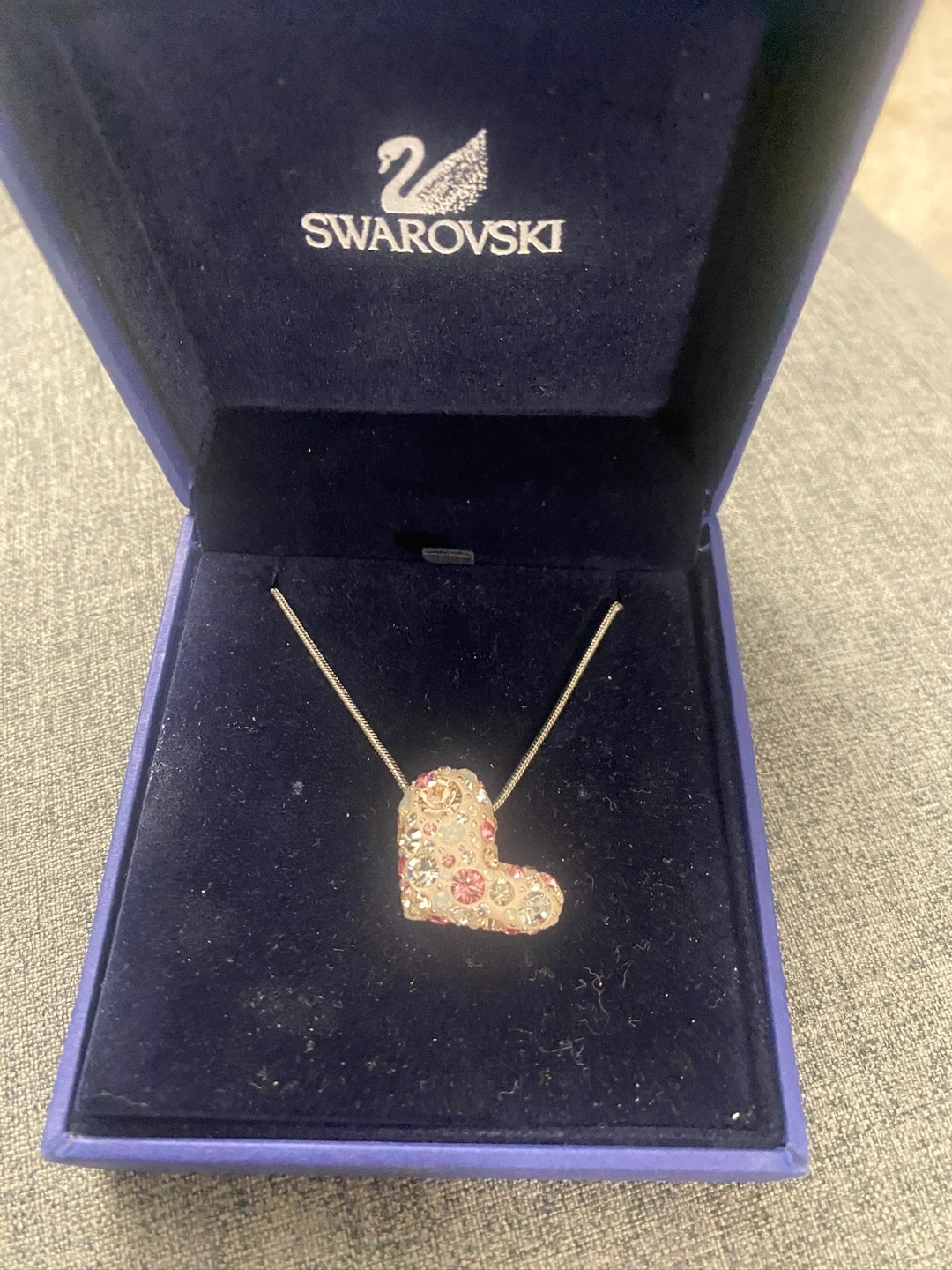 Selling a lovely Swarovski heart pendant necklace! It comes in its original box, perfect for gifting or keeping it safe. The pendant is adorned with sparkly crystals, making it a beautiful accessory for any outfit