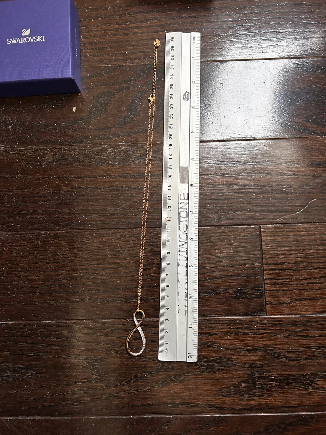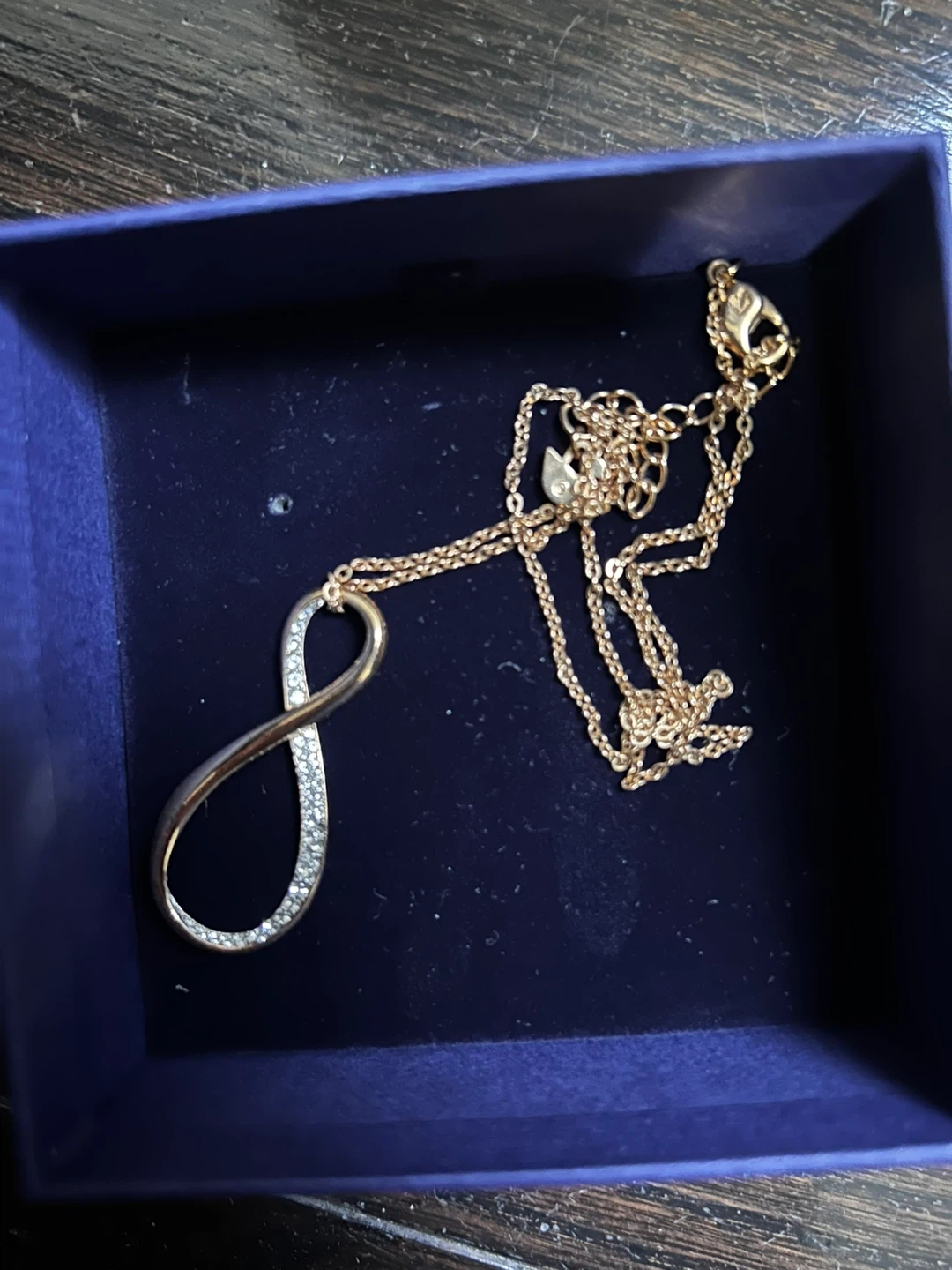 248Selling a lovely Swarovski Infinity gold coloured pendant necklace in excellent condition! It comes with its original box. Paid $145 USD. Pendant can be worn as shown or the opposite. The pendant is also the same on both sides including the stones.