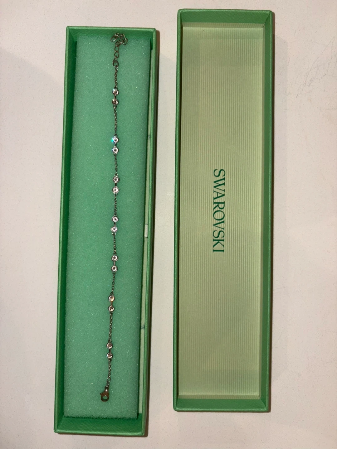 73Swarovski bracelet in silver. It comes with its original box It's in good condition other than slight discolouration on the clasp. Open to offers