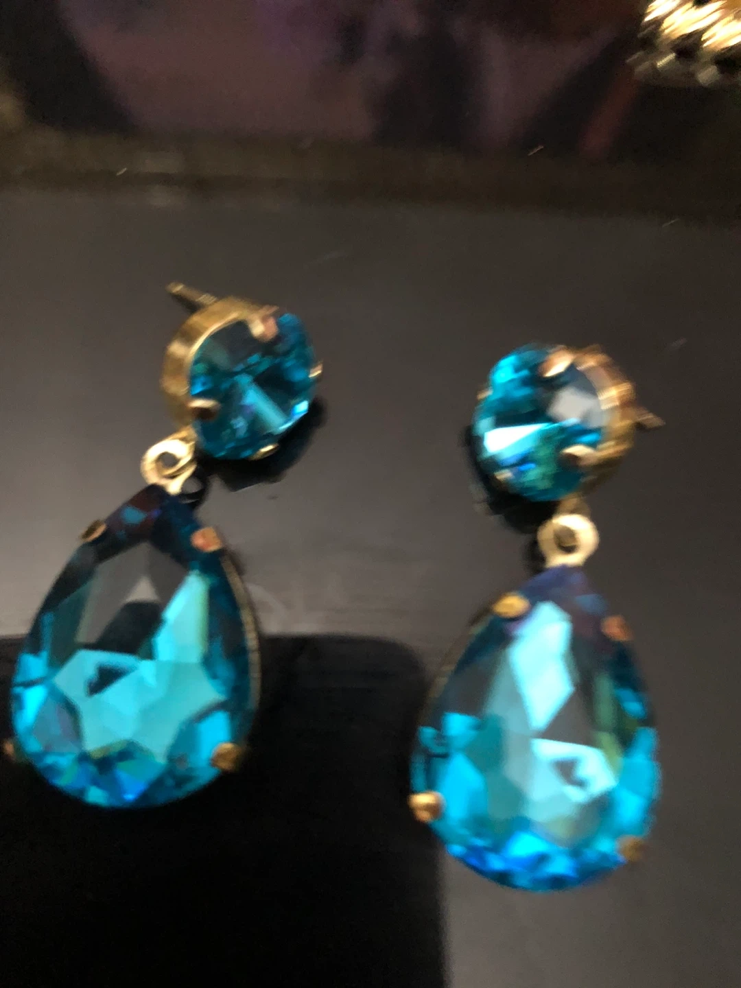 9Beautiful pair of teardrop earrings with a lovely blue colour! They're in great condition and would be a lovely addition to your jewellery collection