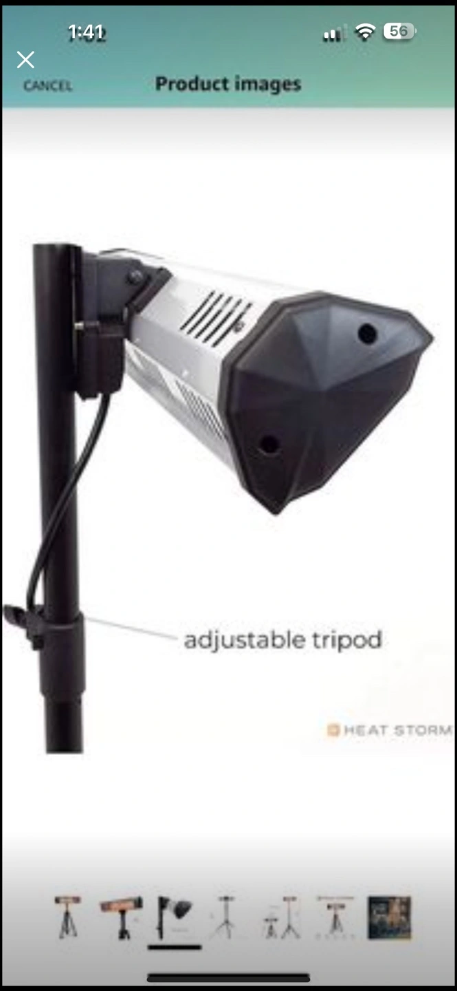 Outdoor patio heater with adjustable tripod stand. Includes 13 foot cord. Heater is weatherproof and has no harmful fumes, New , I have 2 of them , each $85