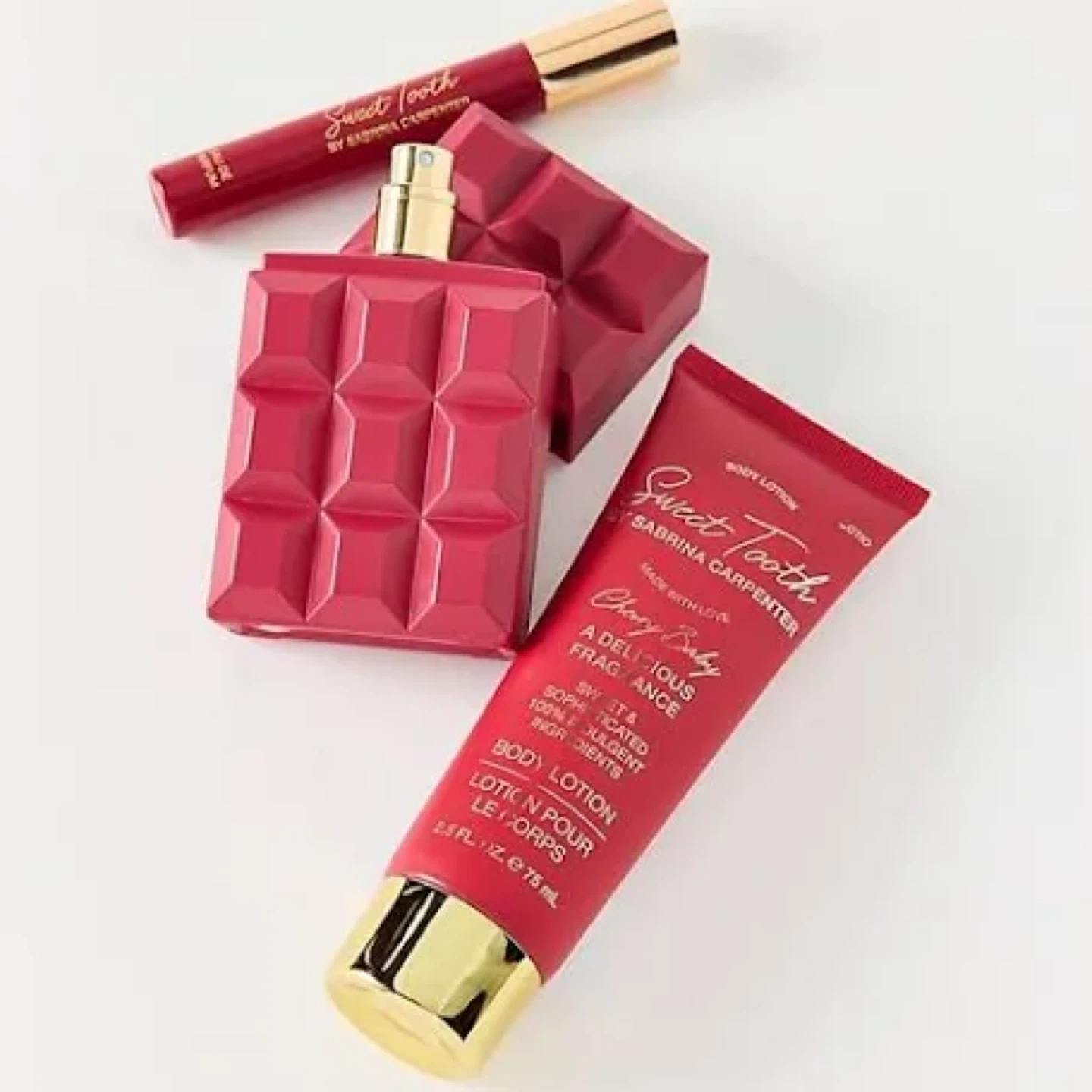 20Selling a Sweet Tooth by Sabrina Carpenter set! It includes the body lotion (2.5 fl oz/75 ml), perfume, and a lip product. This set has a delicious fragrance and sophisticated ingredients!