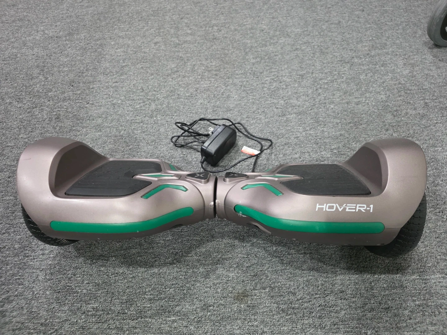 This is a Hover-1 hoverboard in grey with green accents. It comes with its original charger. Perfect for getting around town or just for fun! Never used outdoors