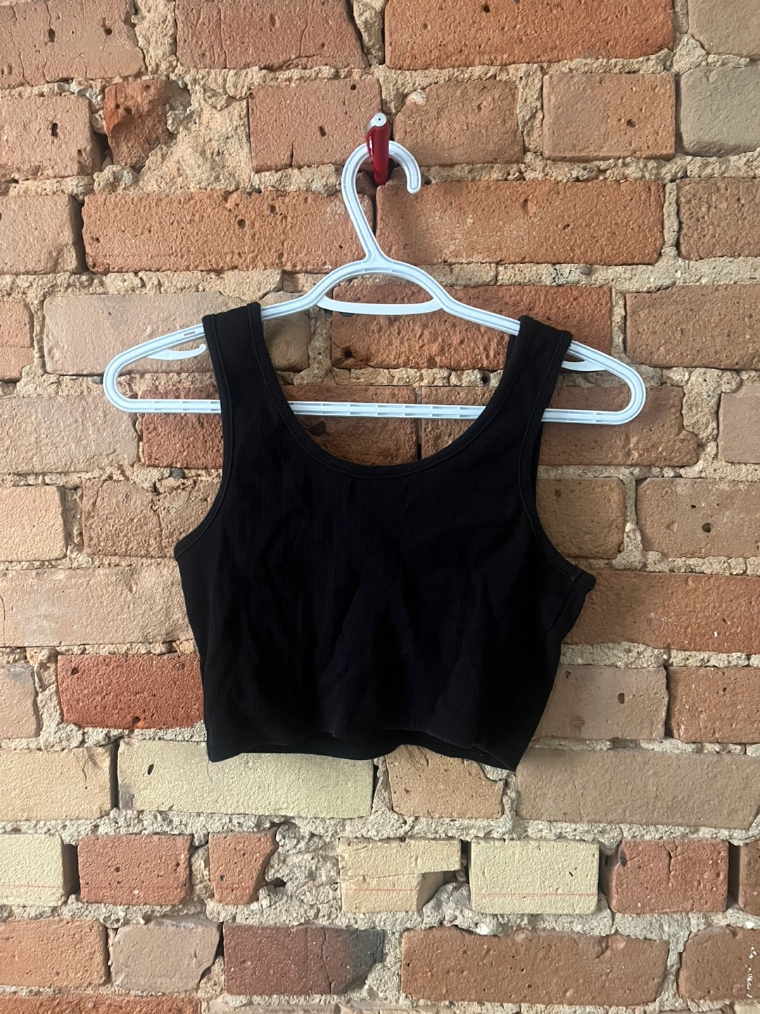 84Cute black ribbed crop tank from SWS Essentials. It's a size medium.