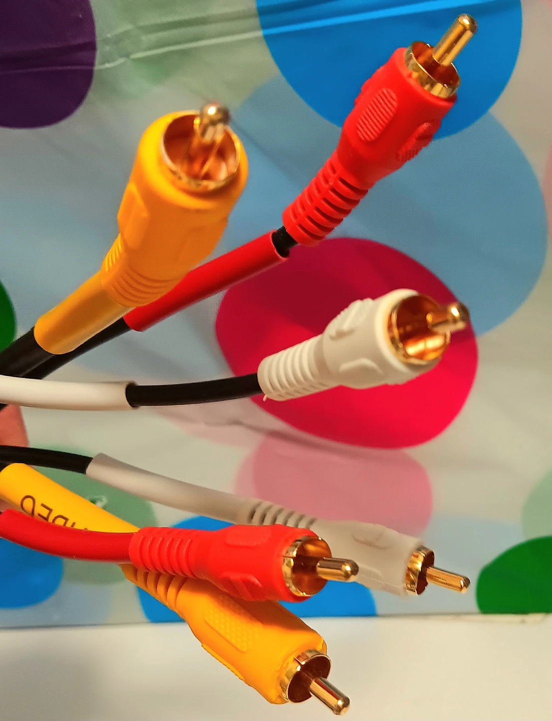 These are used RCA cables, perfect for connecting your audio and video components. These cables have the standard red, white, and yellow connectors for audio and composite video signals. They are in good working condition and ready to use.