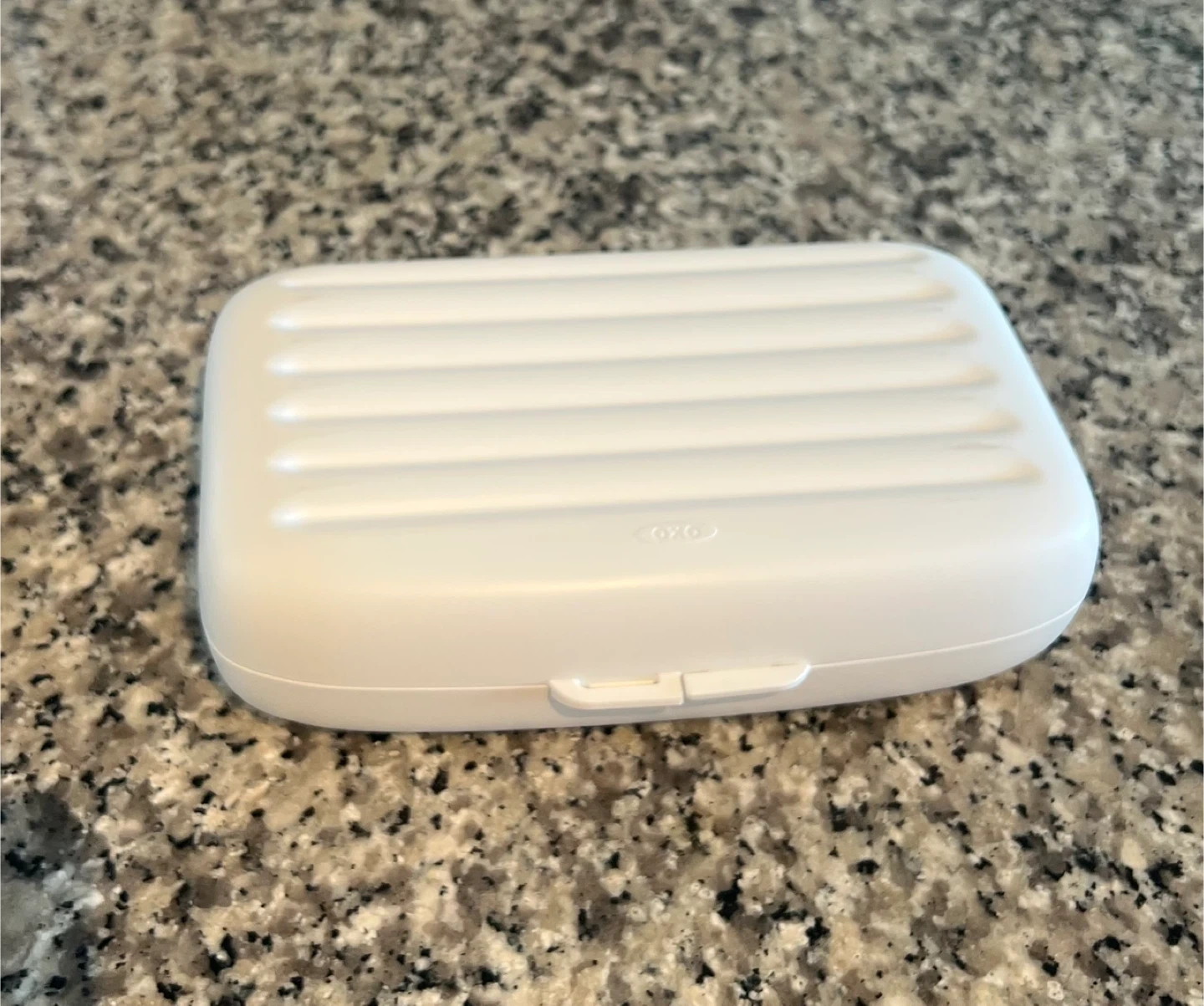 I'm selling an OXO Tot Travel Size Drying Rack with Bottle Brush in Gray. It's perfect for keeping your baby bottles and accessories clean on the go! The brush comes apart for easy storage in the rack, and there's even a detail cleaner stored in the handle for cleaning small parts. Dimensions are 5.5 in x 2.2 in x 5.6 cm.