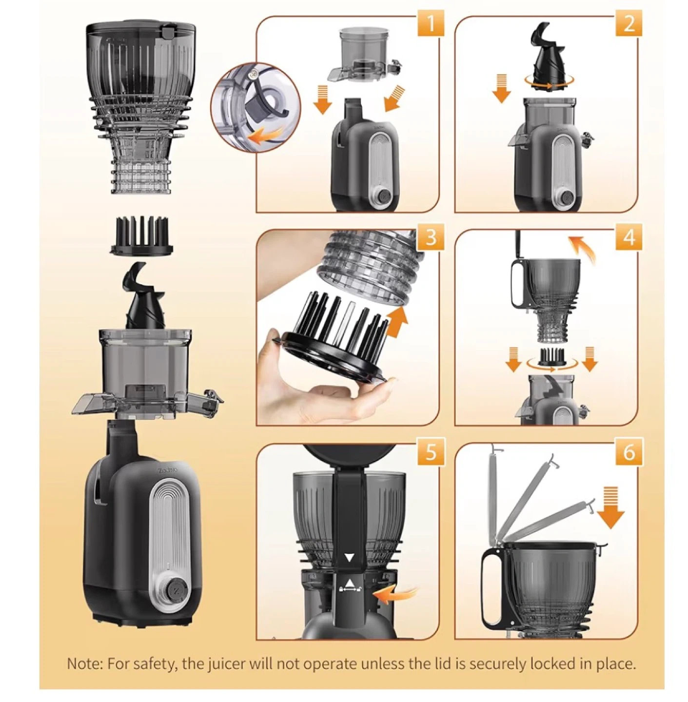 Zachvo Slow Juicer MP-802M with 148mm Chute