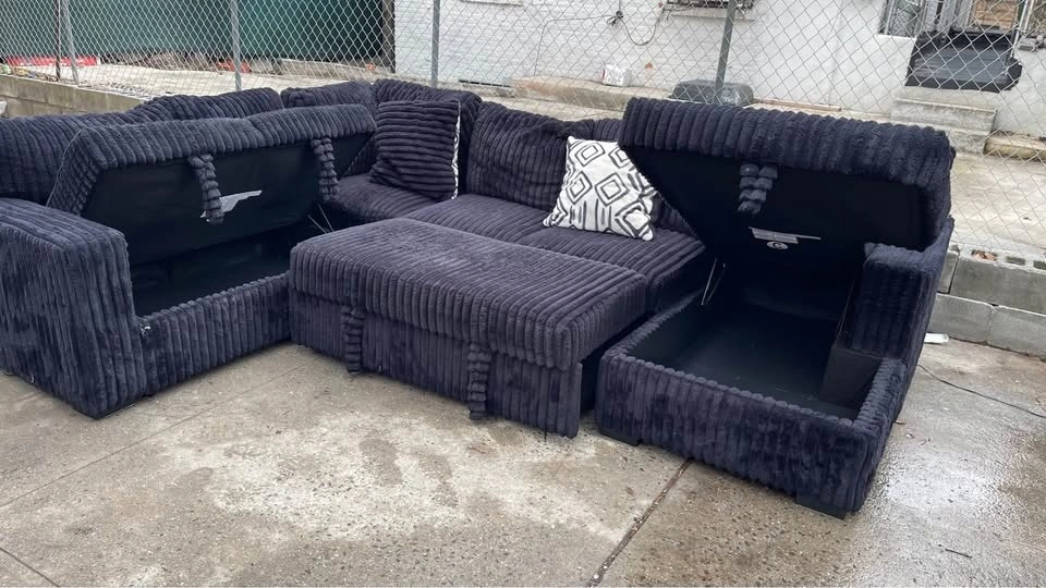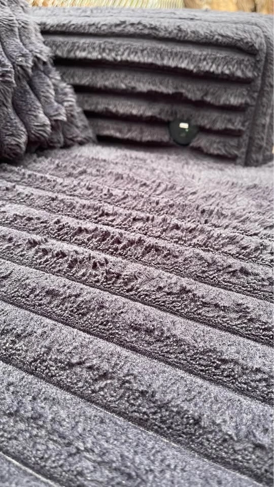 Selling a comfortable black Corduroy sectional sofa. It's perfect for a living room or entertainment space. The material is soft and inviting, making it a great spot to relax and unwind after a long day. It's a great addition to any home!